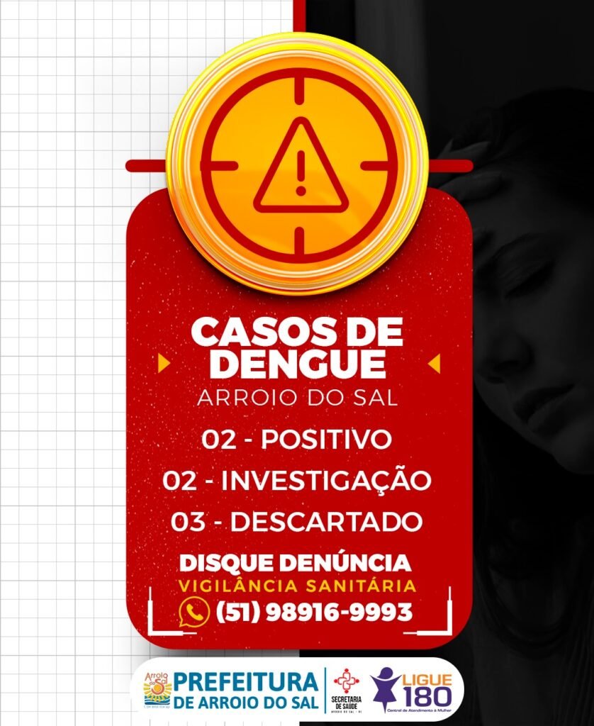 As autoridades de saúde de Arroio do Sal estão realizando ações de vigilância epidemiológica e orientando a população sobre os sintomas da dengue, que incluem febre alta, dores musculares e articulares, dor de cabeça, entre outros. Em caso de suspeita, é fundamental procurar atendimento médico para o diagnóstico e tratamento adequados.Diante desse cenário, é essencial que a comunidade esteja unida no combate à dengue, adotando medidas preventivas em seus lares e contribuindo para a erradicação dos criadouros do mosquito transmissor. A colaboração de todos é fundamental para preservar a saúde e o bem-estar da população de Arroio do Sal.