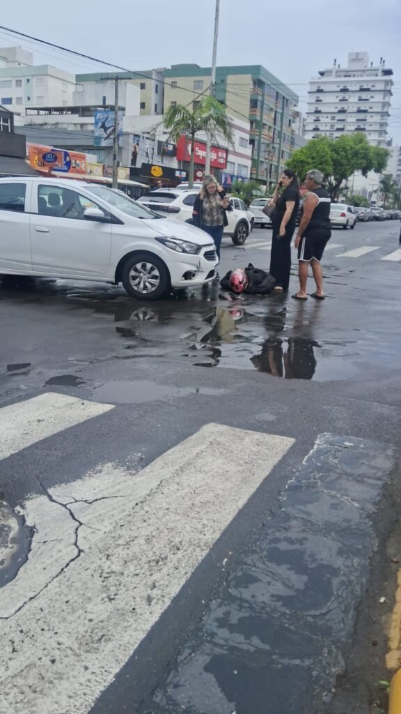 Por volta das 13h desta sexta-feira (28), um acidente envolvendo um carro e um motociclista foi registrado na Avenida Paraguassú, esquina com a Rua Maraguab, em Capão da Canoa.