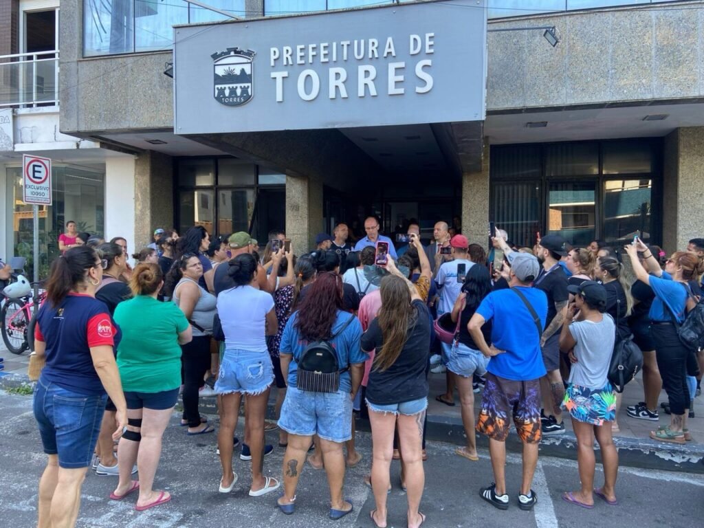 Na tarde desta segunda-feira (17), funcionárias da empresa terceirizada Du Zé Serviços de Limpeza Urbana LTDA realizaram um protesto em frente à sede da Prefeitura de Torres. A manifestação teve como objetivo reivindicar o pagamento de salários atrasados, situação que tem gerado dificuldades financeiras para as trabalhadoras.