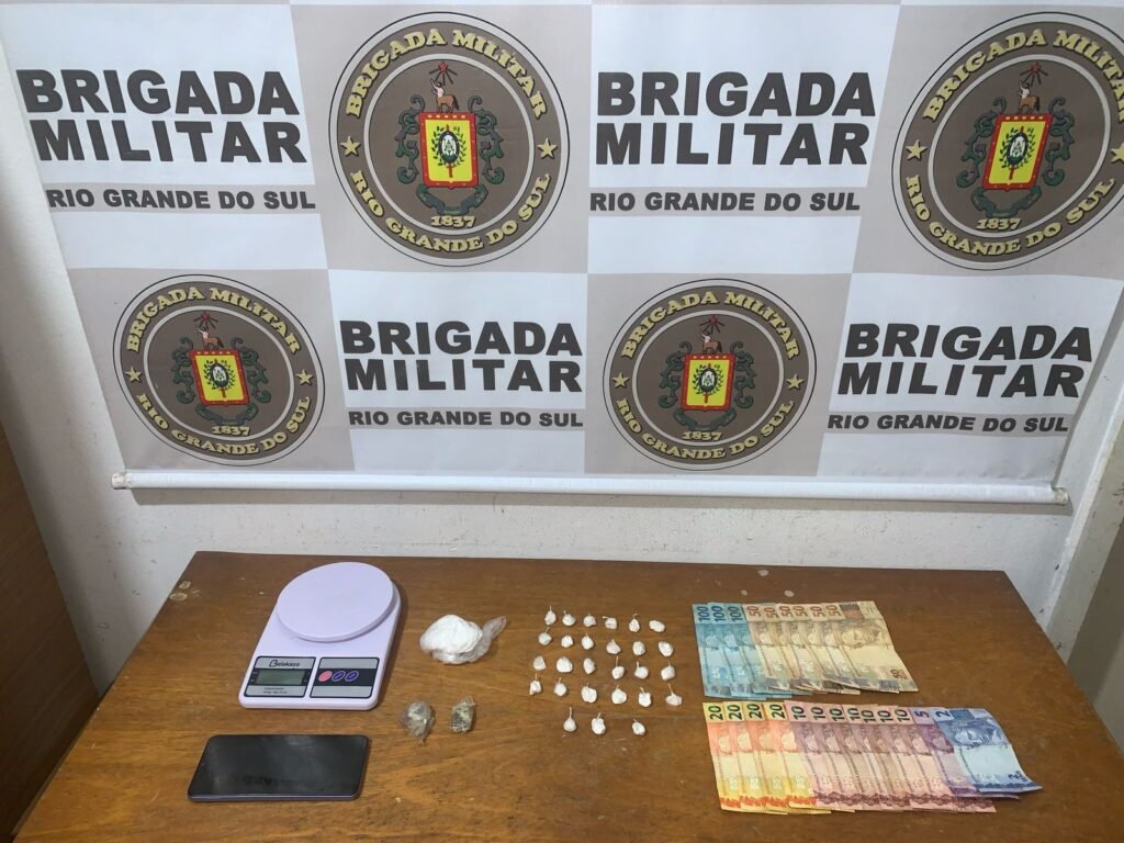 Em Palmares do Sul, a intervenção policial foi motivada por uma denúncia sobre a venda de entorpecentes no bairro Porto. Um homem foi abordado e flagrado com dez petecas de cocaína. No decorrer da ocorrência, uma mulher também foi detida com 17 porções de cocaína, uma porção maior da mesma substância, duas porções de maconha, uma balança de precisão, um celular e a quantia de R$757.