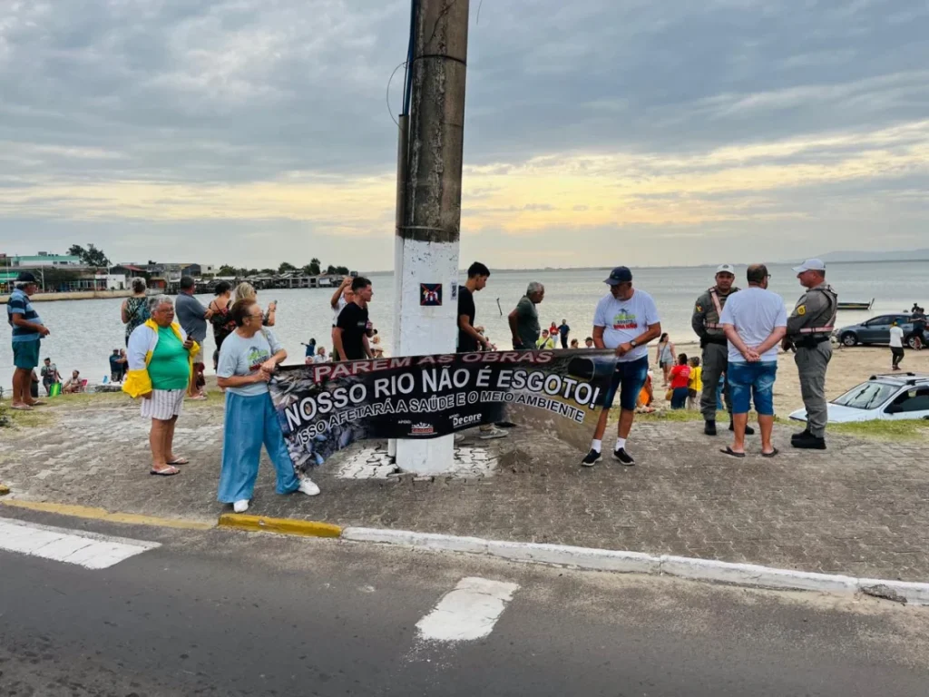 Os participantes levaram cartazes e faixas contrárias ao lançamento de efluentes no Rio Tramandaí, provenientes de uma estação de tratamento de esgoto localizada em Xangri-Lá. A obra, realizada pela Companhia Riograndense de Saneamento (Corsan), faz parte da ampliação do sistema de esgotamento sanitário da região e já possui licença da Fundação Estadual de Proteção Ambiental (Fepam); a previsão é que as operações tenham início no segundo trimestre deste ano.