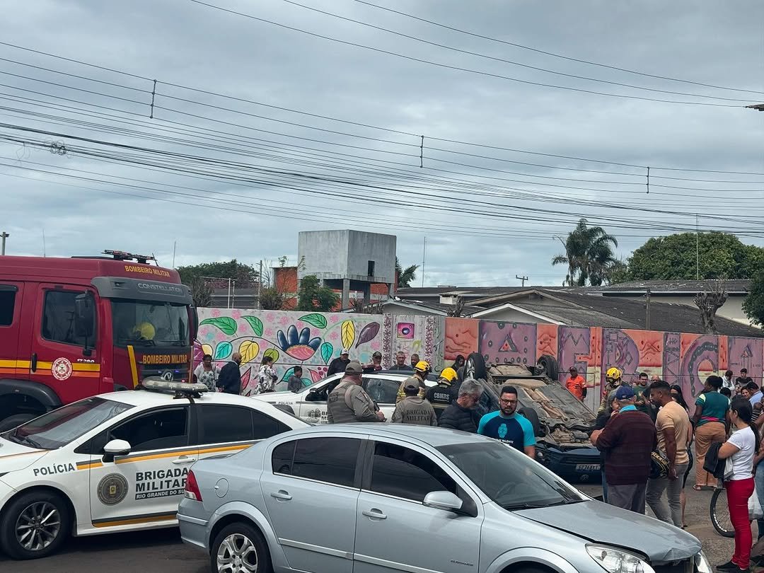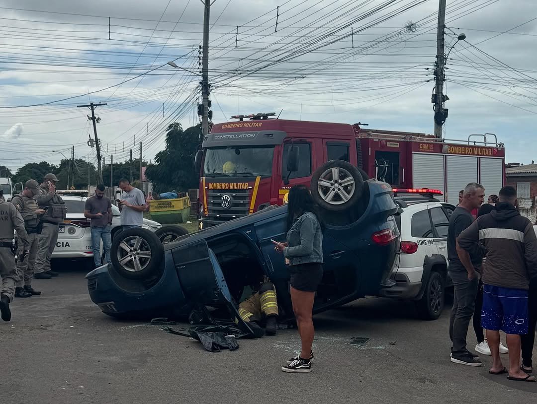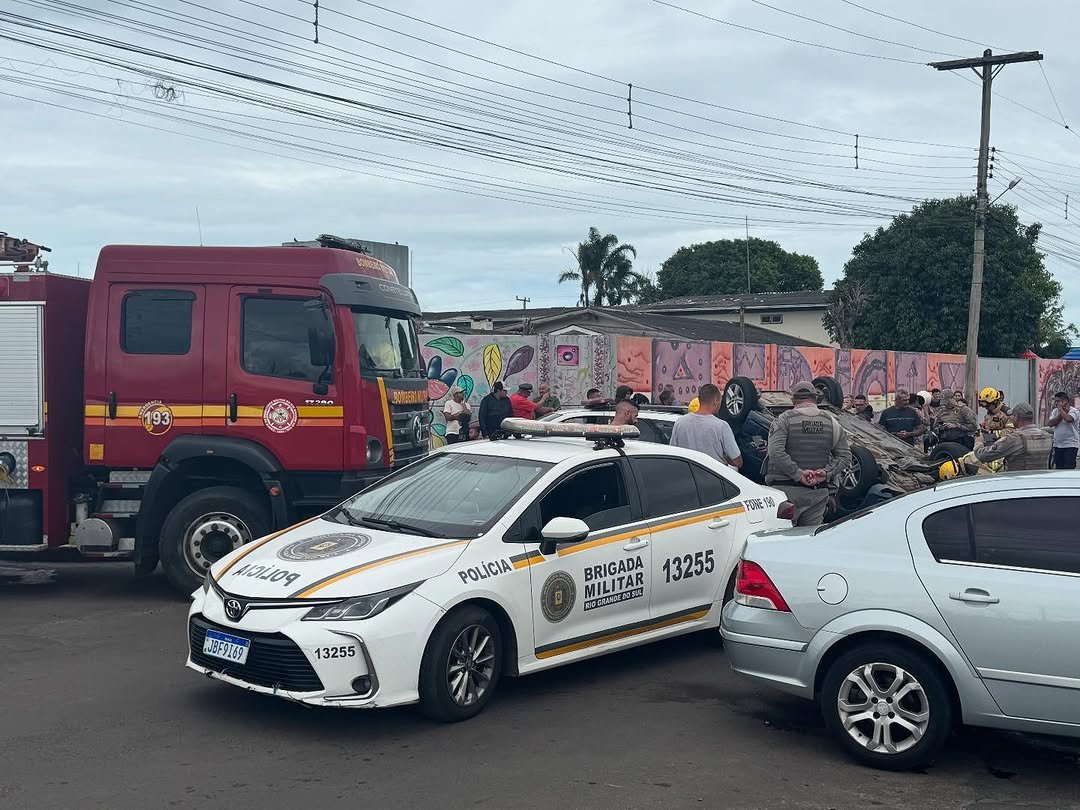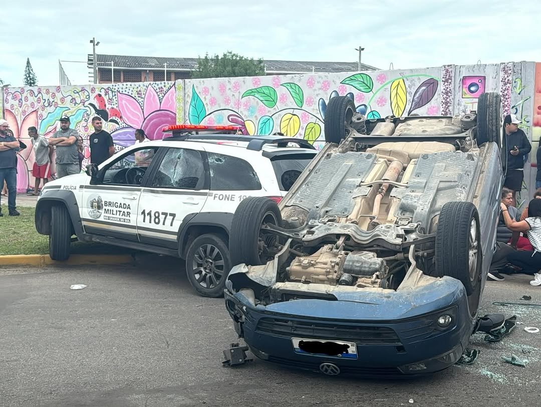 De acordo com informações preliminares, um automóvel modelo Vectra teria avançado a sinalização de parada obrigatória no cruzamento e colidido com um veículo Fox. Com o impacto, o Fox capotou e atingiu uma viatura da Brigada Militar que realizava patrulhamento ostensivo na região. O veículo oficial teve danos na lateral e na traseira, além de vidros quebrados. Nenhum policial militar se feriu na ocorrência.