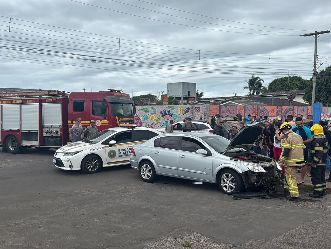 Um acidente de trânsito registrado no fim da manhã deste domingo (6) resultou em três pessoas feridas e danos a uma viatura da Brigada Militar em Capão da Canoa, no Litoral Norte do Rio Grande do Sul. A colisão ocorreu por volta das 11h30 no cruzamento entre a Avenida Luiz Alves Pereira e a Rua Gaspar Grizza, no bairro Santa Luzia.