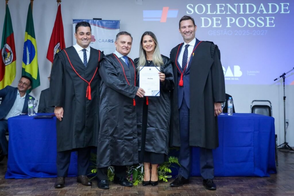 Durante o evento, também foram entregues credenciais aos novos advogados e advogadas da região: Juliane Killing de Almeida Cardoso, Michelle Catyele da Rosa, Milena da Silva Justo e Anderson da Silva Teixeira.