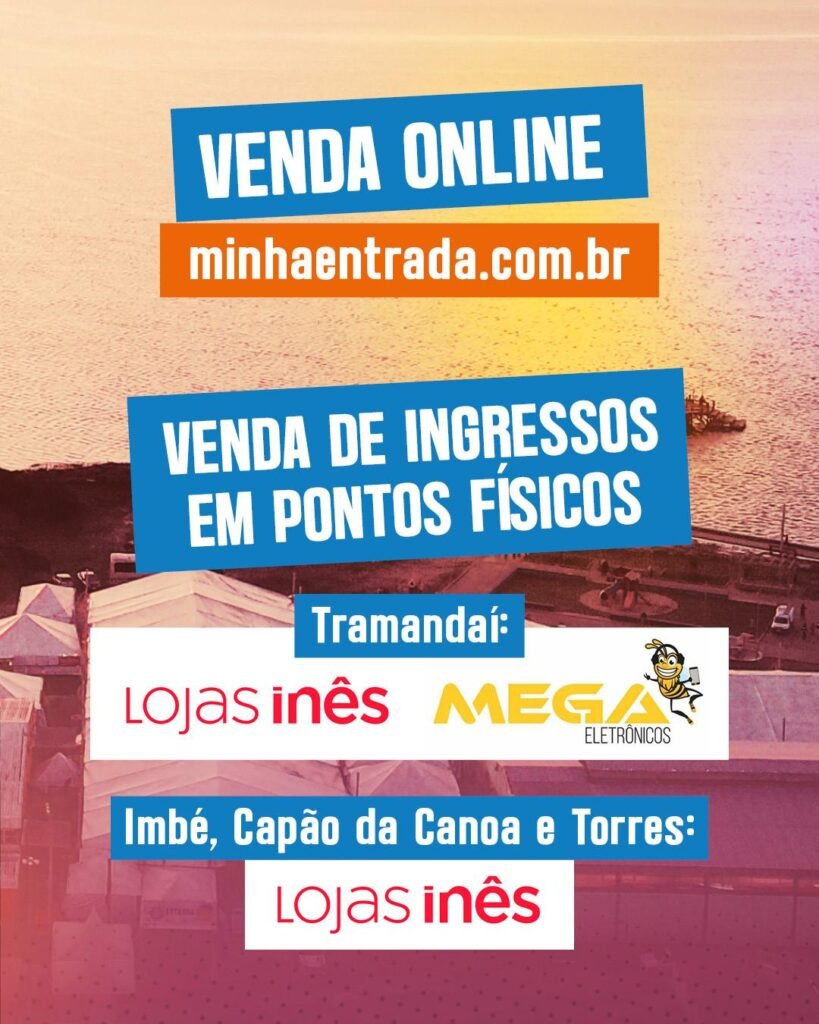 Combinando gastronomia típica, cultura regional e grandes atrações musicais, o evento deve movimentar milhares de visitantes ao longo das três semanas de programação. As entradas podem ser adquiridas pelo site minhaentrada.com.br e em pontos físicos selecionados. Em Tramandaí, as vendas ocorrem nas Lojas Inês e na Mega Eletrônicos. As Lojas Inês também são ponto de venda nas cidades de Imbé, Capão da Canoa e Torres.