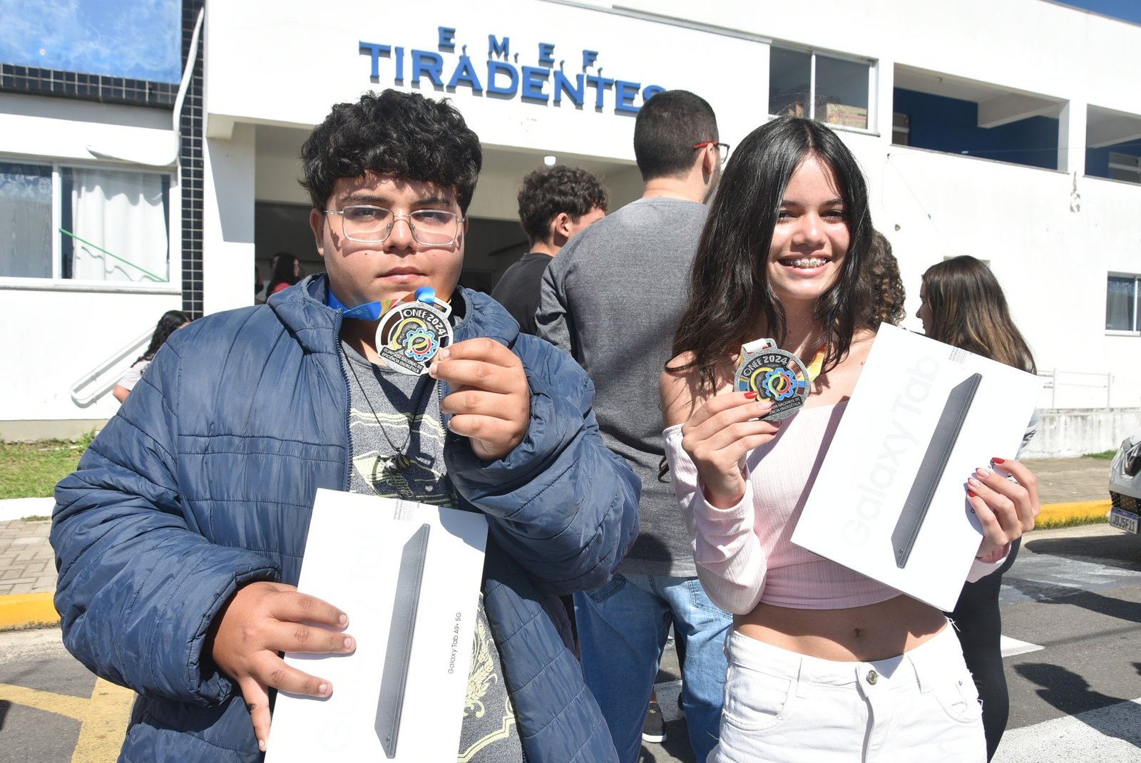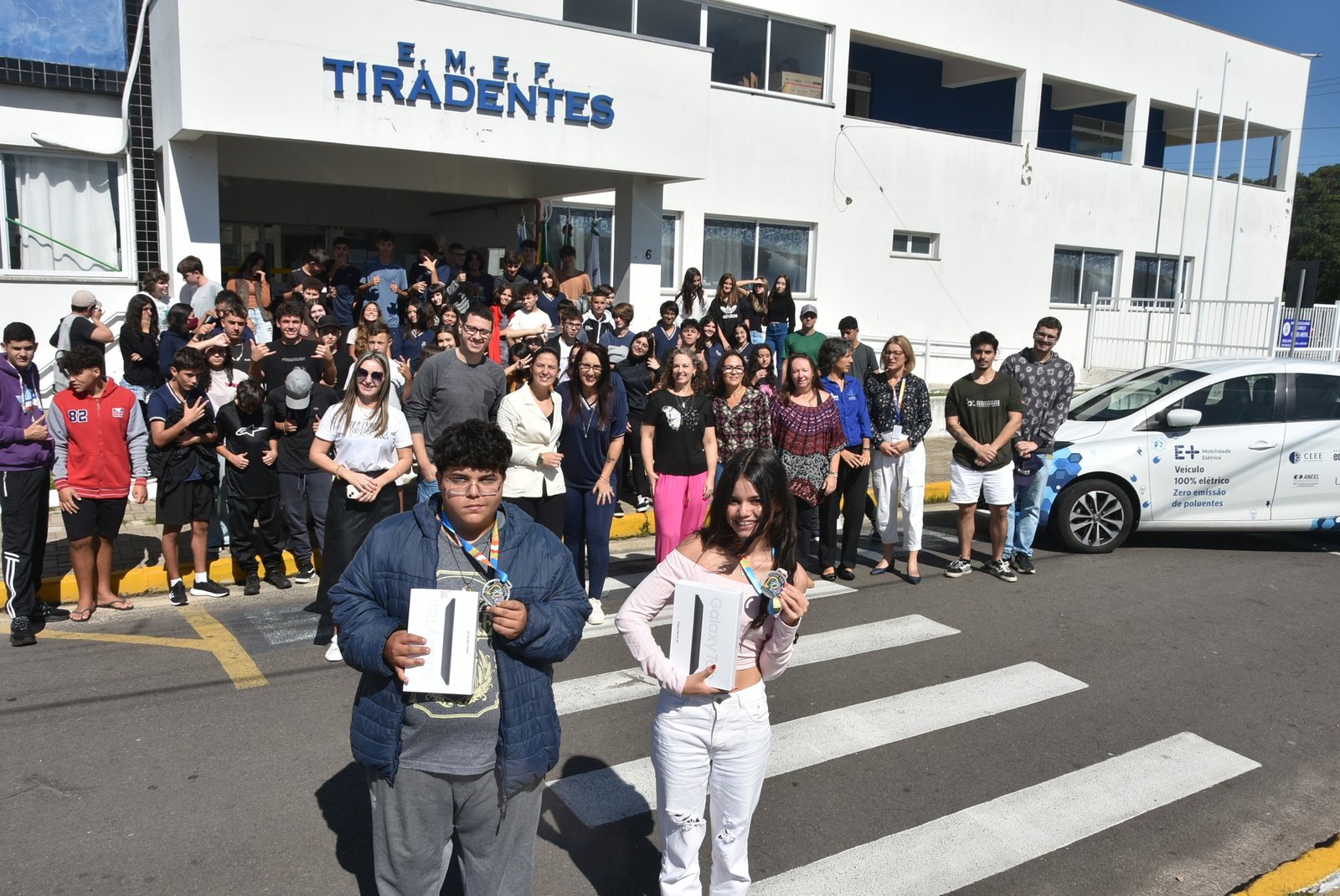 Na última segunda-feira (14), a Escola Municipal de Ensino Fundamental Tiradentes, em Imbé, foi palco da cerimônia de entrega das medalhas da Olimpíada Nacional de Eficiência Energética (ONEE). O evento destacou o desempenho dos estudantes Julia da Silveira Rosa e Rodrigo Freitas de Fraga Filho, do 8º ano, que conquistaram medalhas de prata na competição.