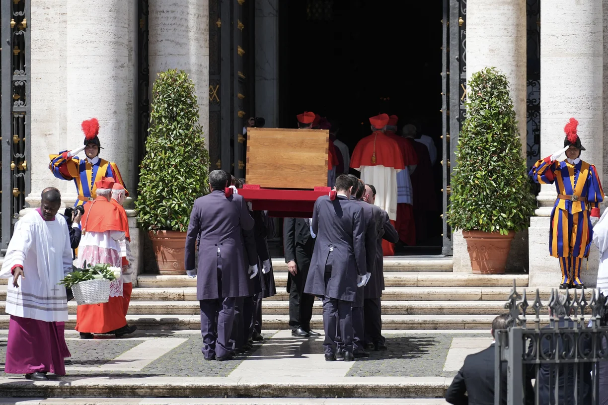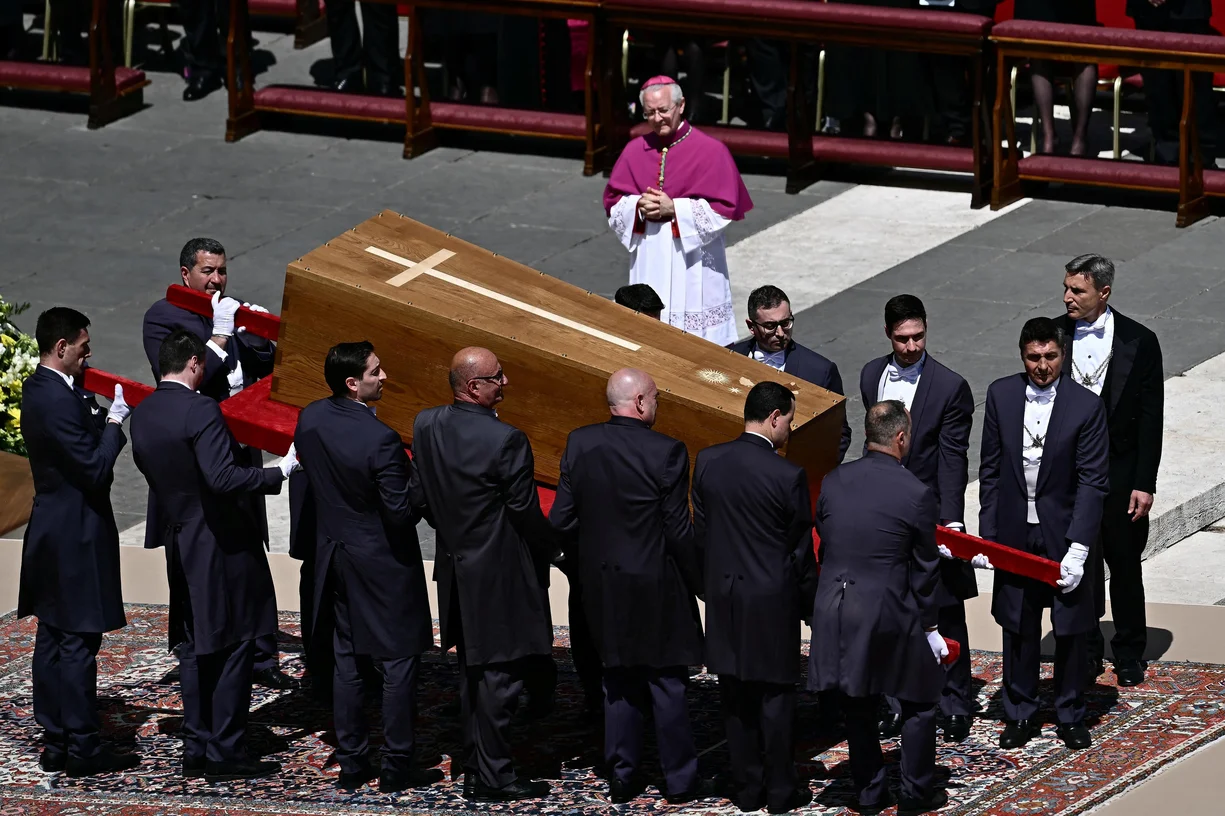 Após a missa, o corpo de Francisco foi levado em cortejo pelas ruas de Roma, em um percurso de 5,5 quilômetros que passou em frente a monumentos históricos como o Coliseu. O trajeto, realizado em baixa velocidade pelo papamóvel, permitiu que fiéis prestassem suas últimas homenagens. O cortejo terminou na Basílica de Santa Maria Maggiore, onde ocorreu o enterro em cerimônia íntima, sem a presença de público. O sepultamento foi presidido pelo cardeal camerlengo Kevin Farrell. Esta foi a primeira vez desde 1903, com Leão XIII, que um papa foi sepultado fora do Vaticano.