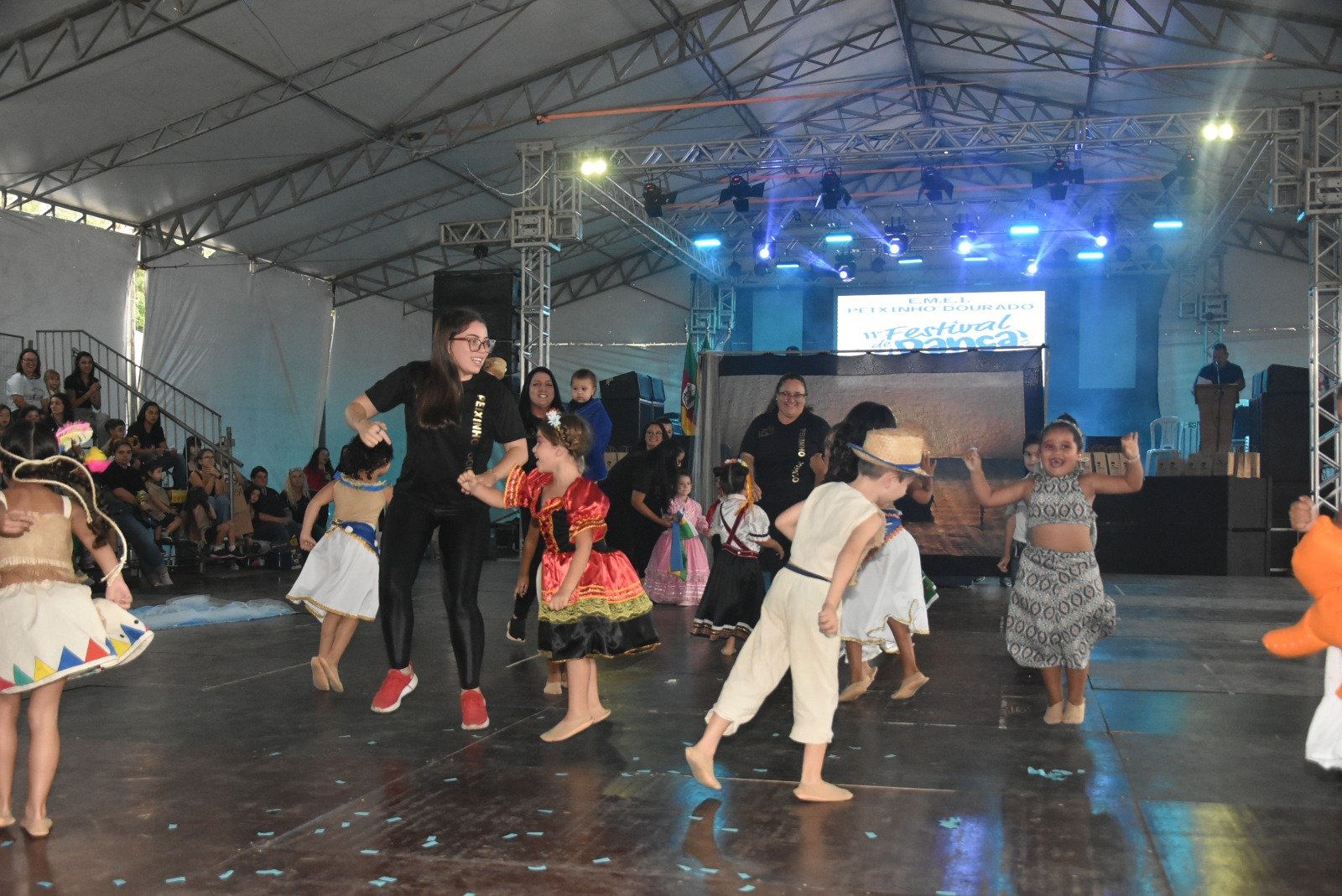 Já à tarde, foi a vez da Educação Infantil brilhar na mostra competitiva. A grande campeã foi a EMEI Jardelino Peroni, com a EMEI Vó Rosa na segunda colocação e a EMEI Chapeuzinho Vermelho em terceiro.