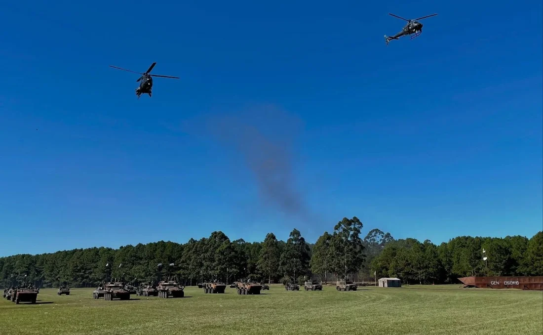 Cenas impactantes tomaram conta da cerimônia, como o sobrevoo de aeronaves, o lançamento de um balão histórico, além de simulações de combate com explosões controladas. A exibição envolveu a tropa hipomóvel do 3º Regimento de Cavalaria de Guarda e uma frota de 17 viaturas militares históricas e contemporâneas, incluindo exemplares como o Renault FT-17 e o moderno Centauro II.