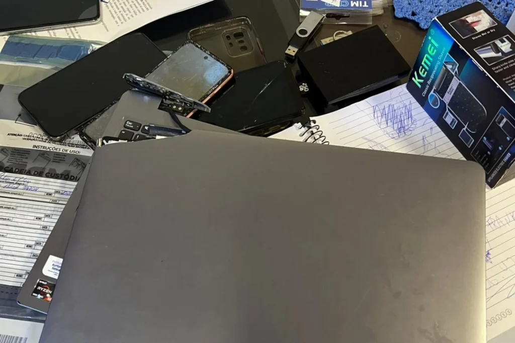 Durante o cumprimento de mandado de busca e apreensão autorizado pela Justiça, a Polícia Civil encontrou na residência do jovem esboços das plantas de escolas da rede municipal de ensino. Também foram apreendidos chips de celular e equipamentos eletrônicos. Um notebook, que teria sido utilizado pelo adolescente, foi danificado pelo irmão mais velho, de 19 anos, mas mesmo assim foi recolhido para análise.