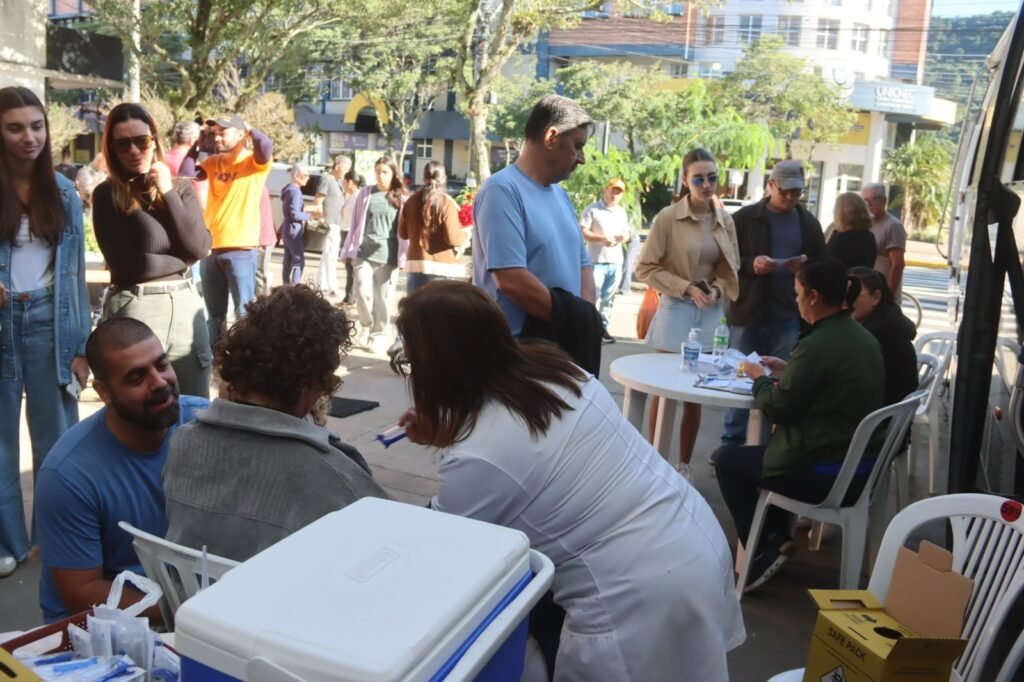 A ação teve como foco ampliar a cobertura vacinal dos grupos prioritários e reforçar a proteção contra a gripe com a chegada das baixas temperaturas. O Prefeito Romildo Bolzan Júnior, acompanhado da Primeira-dama Vera Bolzan e do Secretário Municipal de Saúde, Gonzalo Rafael Pintos, esteve no Largo dos Estudantes para receber a dose do imunizante, incentivando a adesão da população à campanha.