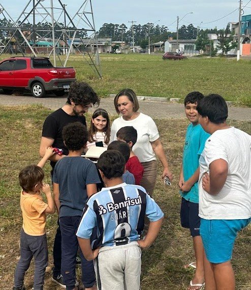No último sábado (17), crianças e adolescentes do bairro Medianeira, em Osório, participaram de uma atividade especial de escuta pública para contribuir com o projeto da primeira praça naturalizada do município. O encontro ocorreu durante o sábado letivo da Escola Municipal de Ensino Fundamental Osmany Martins Véras, que promoveu diversas ações recreativas e comunitárias.