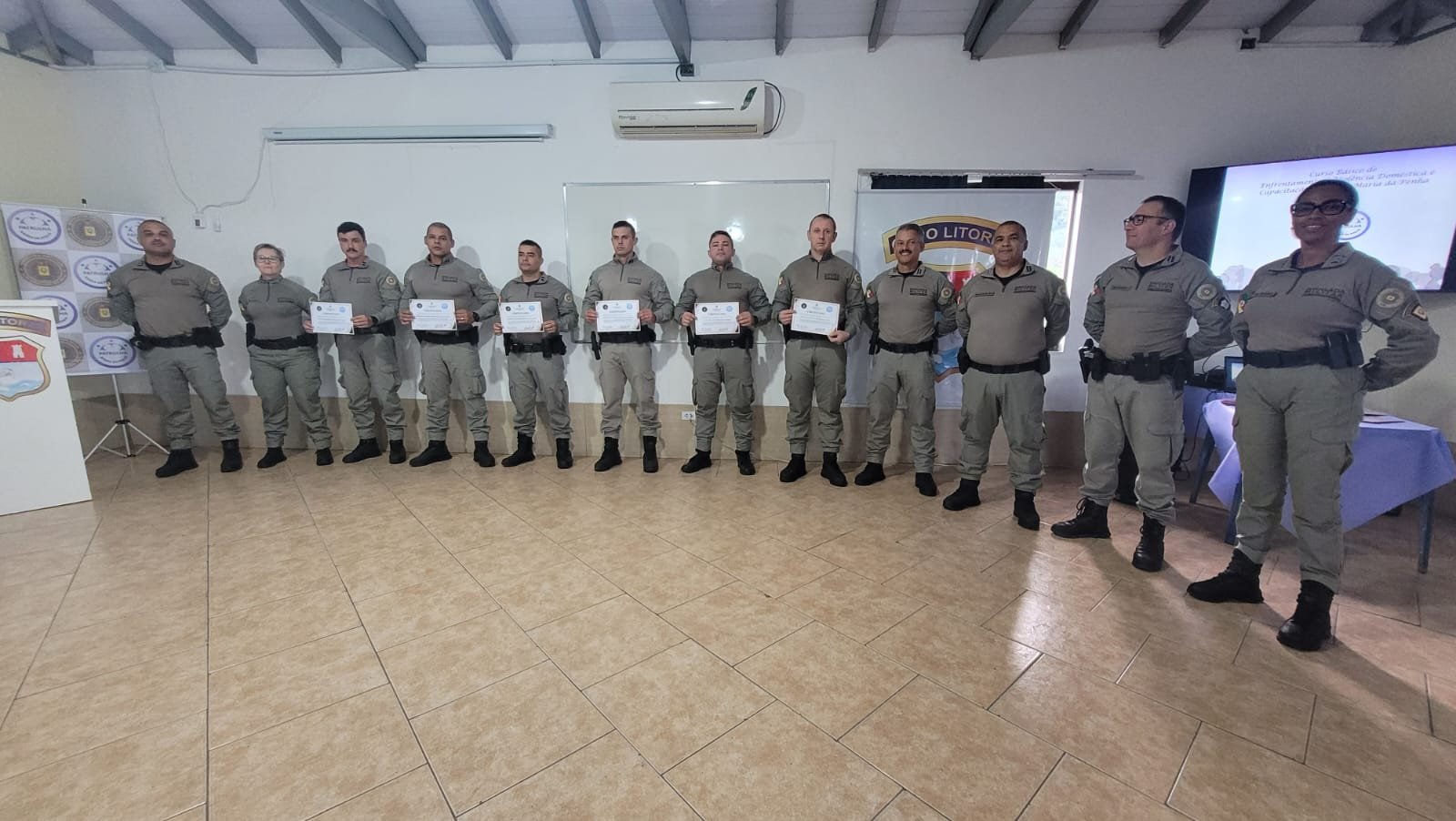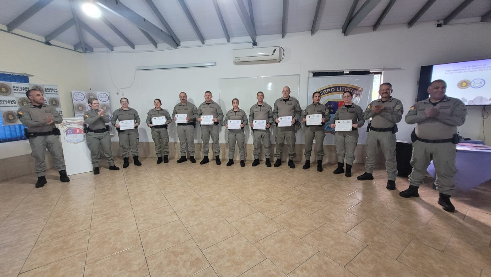 Um grupo de 26 policiais militares que atuam no Litoral Norte concluiu, nesta sexta-feira (23), o Curso Básico de Enfrentamento à Violência Doméstica e Capacitação para a Patrulha Maria da Penha. A formação, promovida pelo Estado-Maior da Brigada Militar (PM3) e pelo Comando Regional de Polícia Ostensiva do Litoral (CRPO Litoral), foi realizada no Complexo de Quartéis da BM, em Osório.