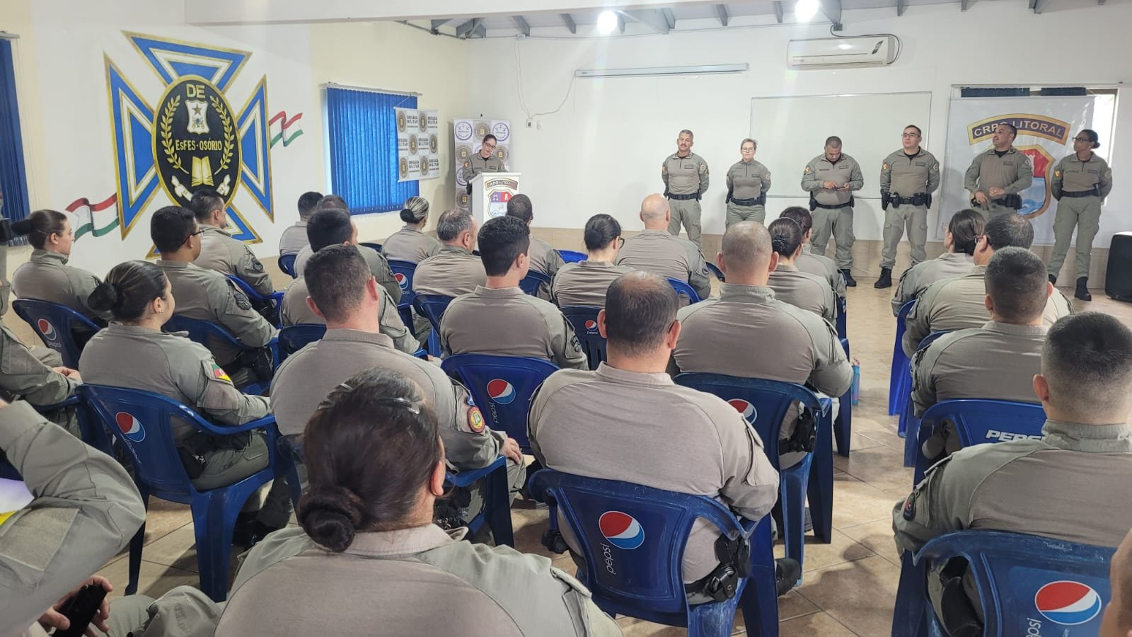 A solenidade de formatura contou com a presença de autoridades da Brigada Militar, incluindo os comandantes do 2º BPAT, 8º BPM e EsFES/Osório, além de representantes do CRPO Litoral.