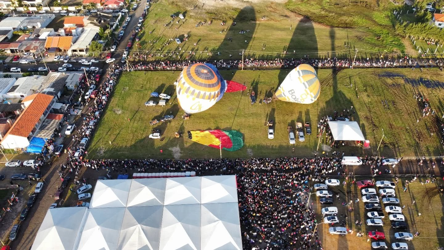 Na tarde de domingo, o público também pôde acompanhar a inflação de alguns balões no solo, entre eles um com as cores e o brasão do Rio Grande do Sul. A Secretaria Municipal de Turismo reforçou que a segurança foi prioridade na decisão de cancelar os voos, já que as rajadas de vento comprometiam a estabilidade das aeronaves.