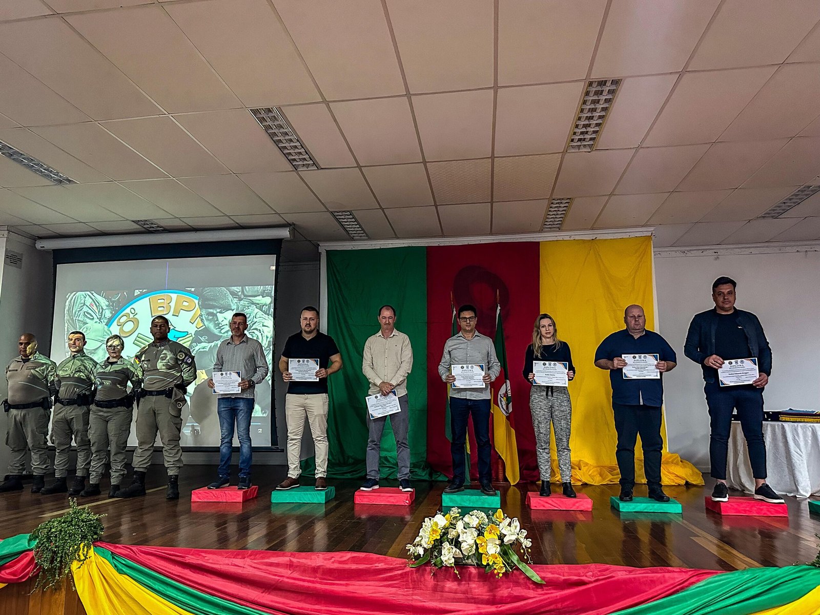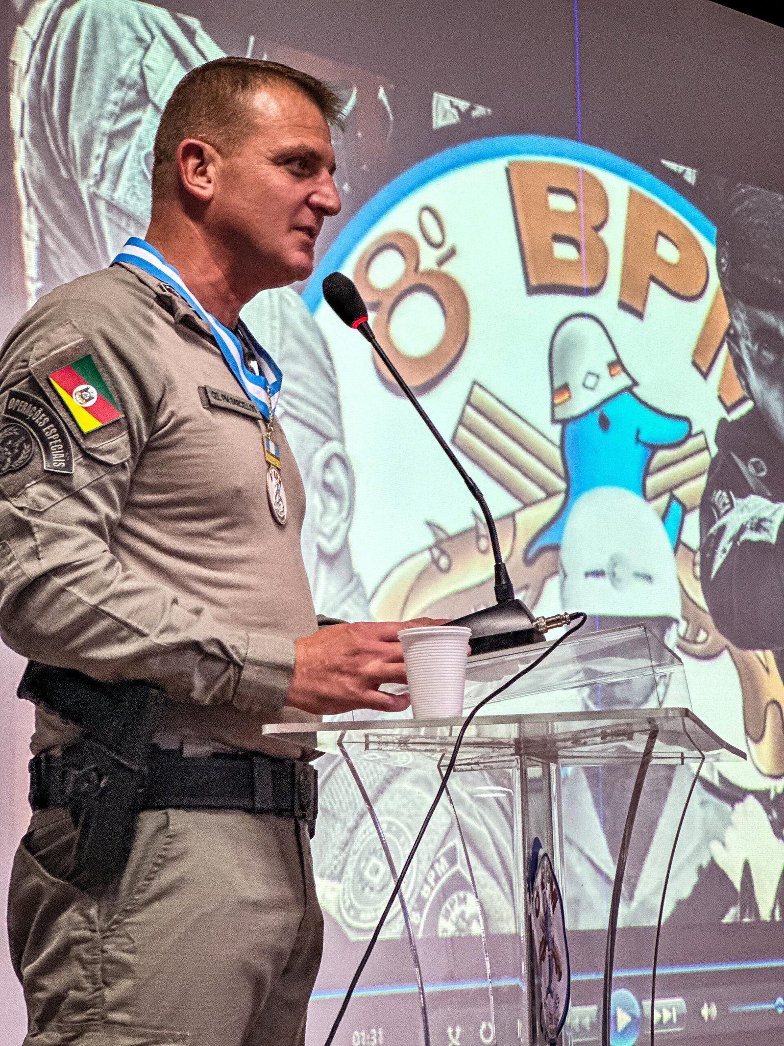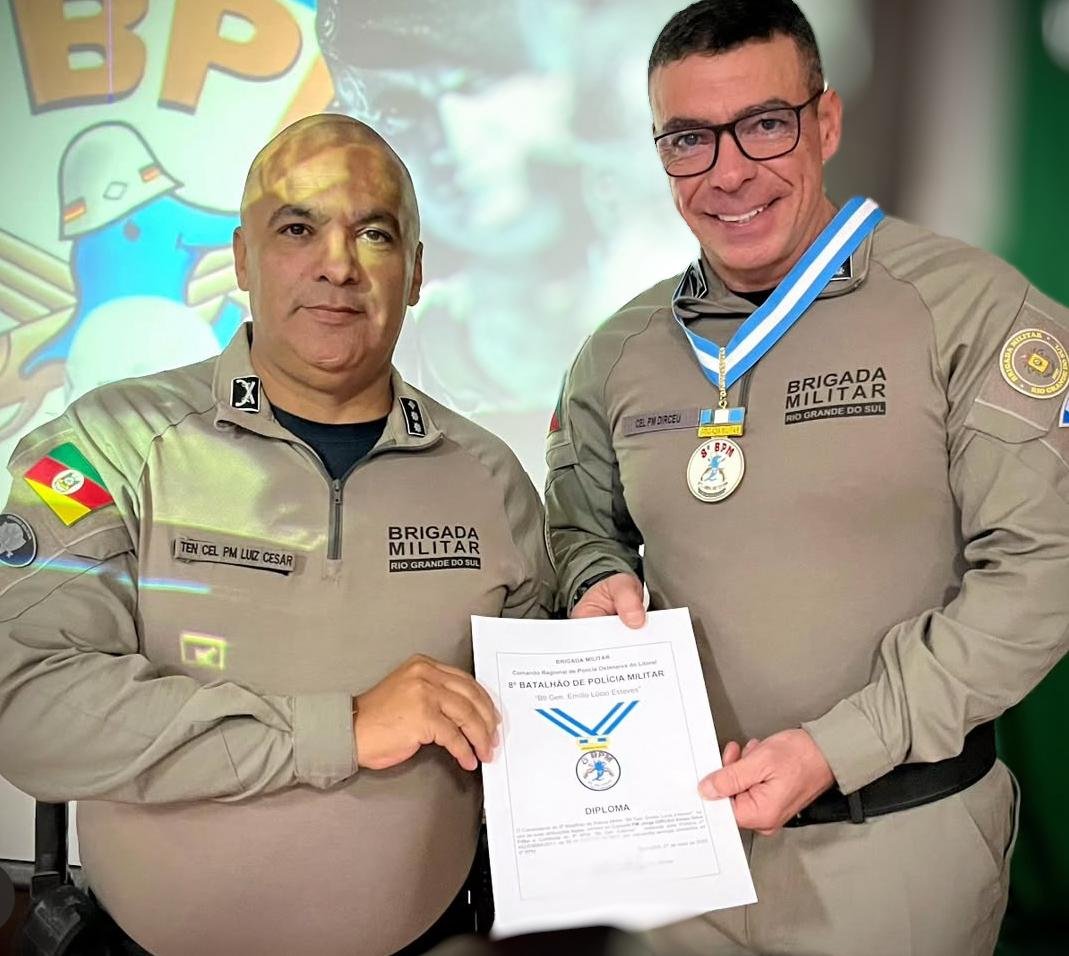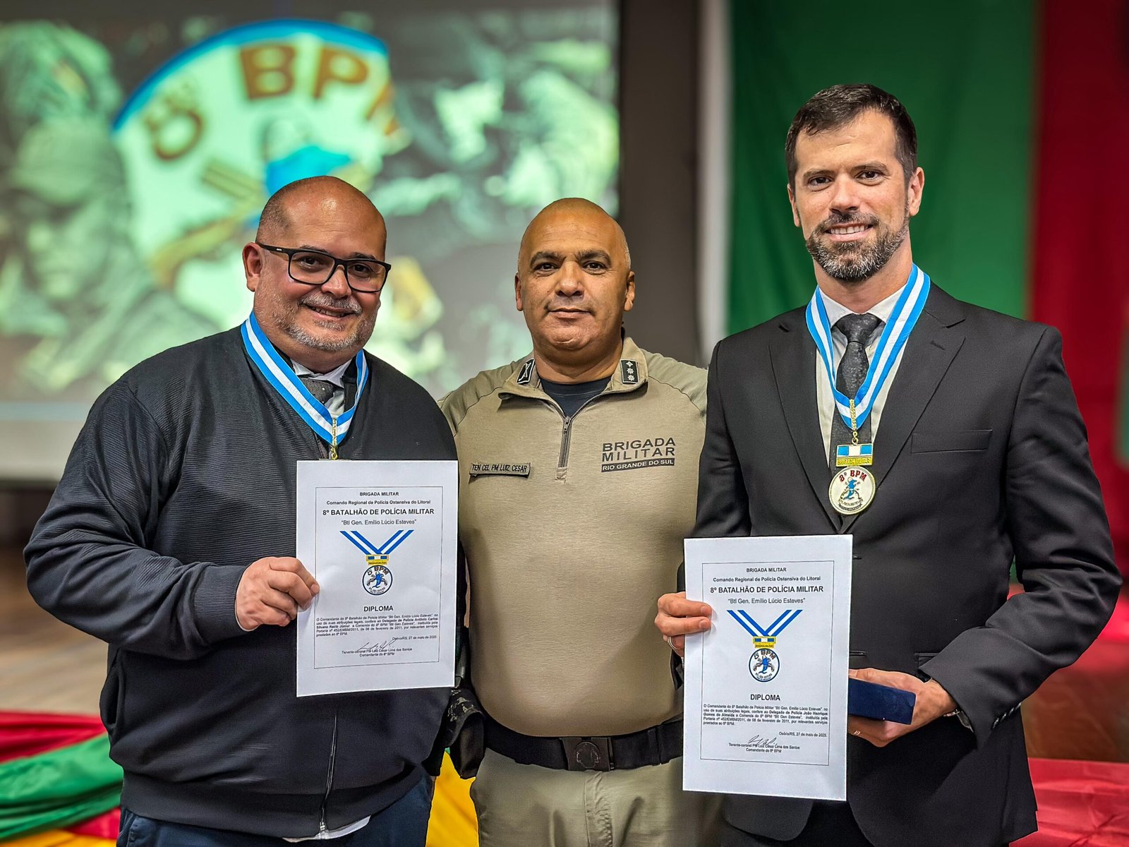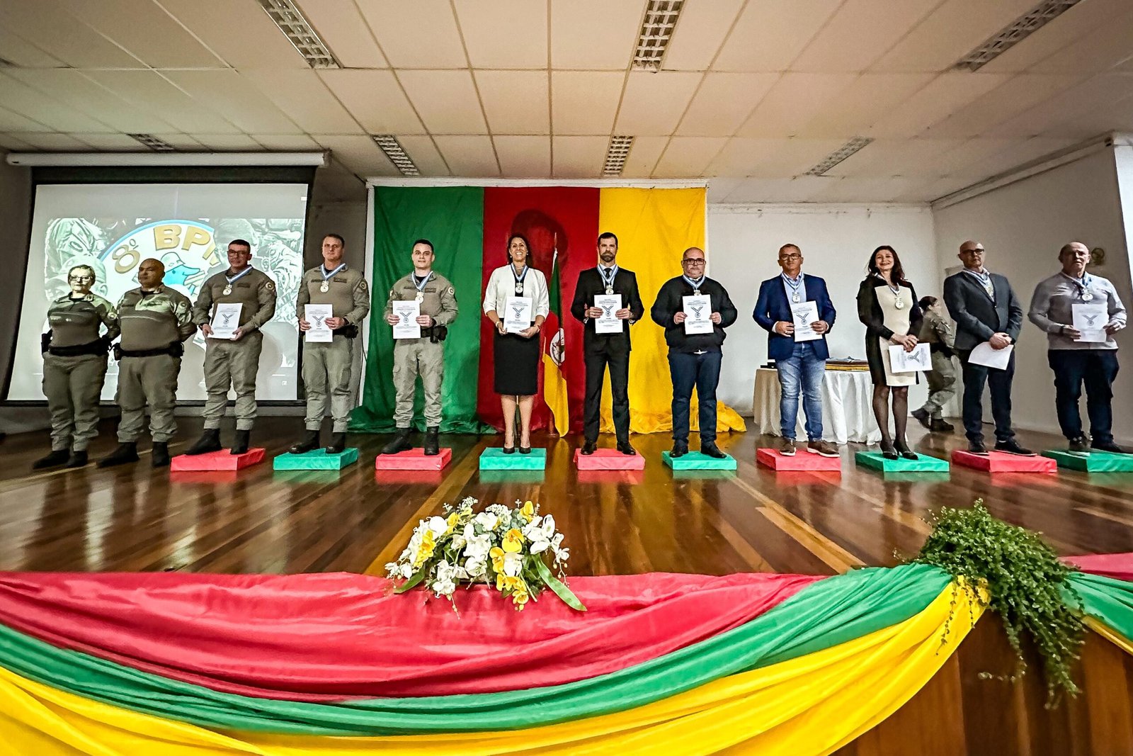 Foram agraciadas dez pessoas com a Comenda do 8º BPM, uma das mais altas honrarias concedidas pela unidade. Os homenageados incluem oficiais da Brigada Militar, integrantes do Judiciário, da Polícia Civil e cidadãos com destacada atuação em apoio às ações de segurança pública. Também foram entregues diplomas de congratulações a militares e empresários que contribuíram para o fortalecimento da atuação do batalhão.