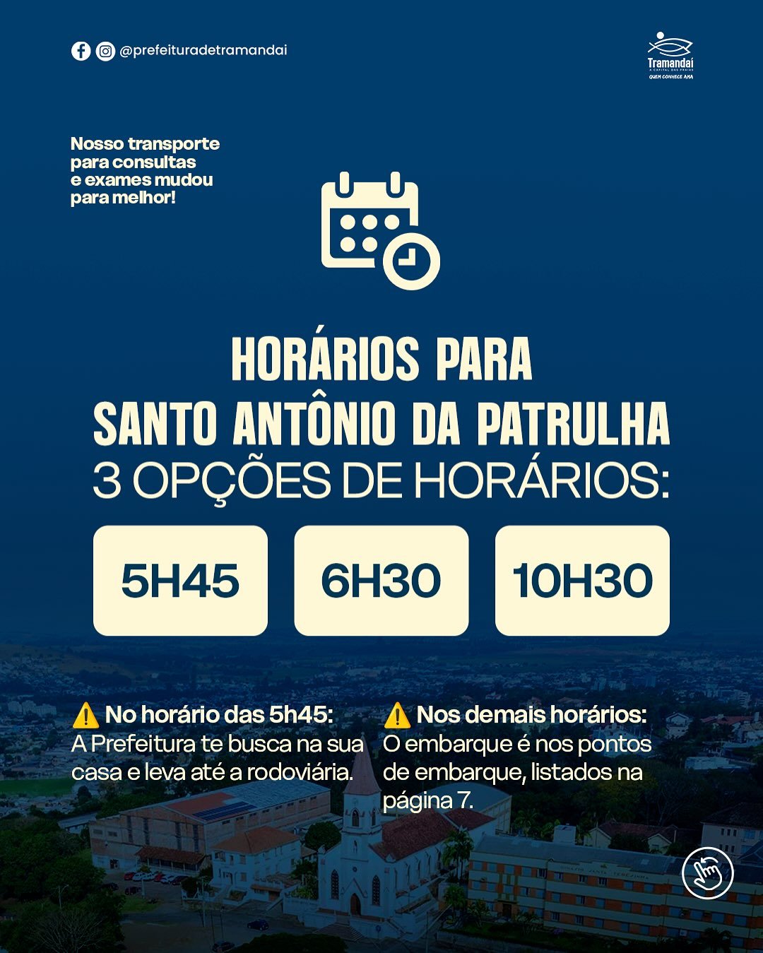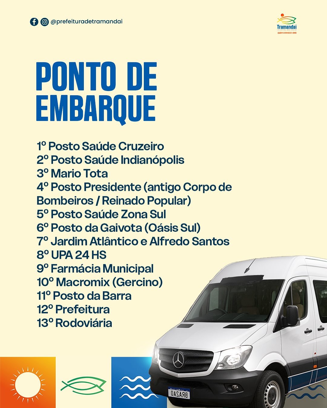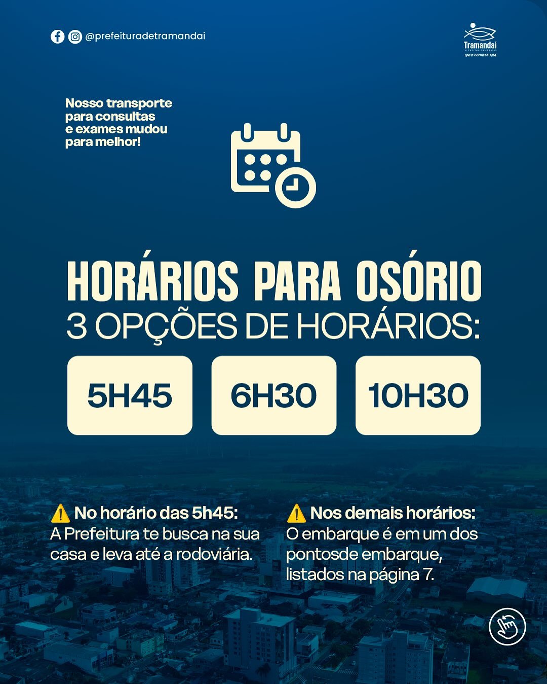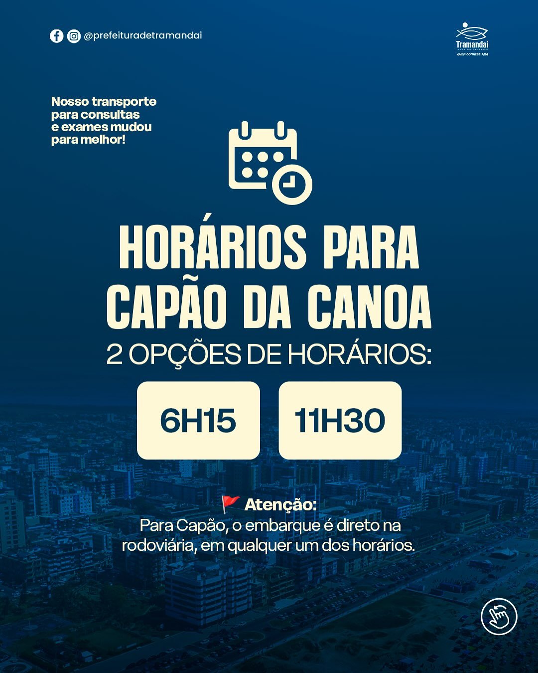 - 5h45 – Transporte da Prefeitura até a rodoviária