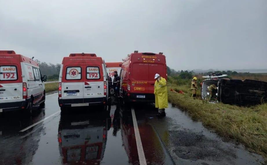 As causas do acidente ainda não foram esclarecidas. As identidades e o estado de saúde dos envolvidos não haviam sido divulgados até o momento da publicação. Imagens registradas pelo Comando Rodoviário da Brigada Militar (CRBM) mostram o atendimento sendo realizado sob forte chuva, com apoio de ao menos três ambulâncias do SAMU e equipes de resgate.