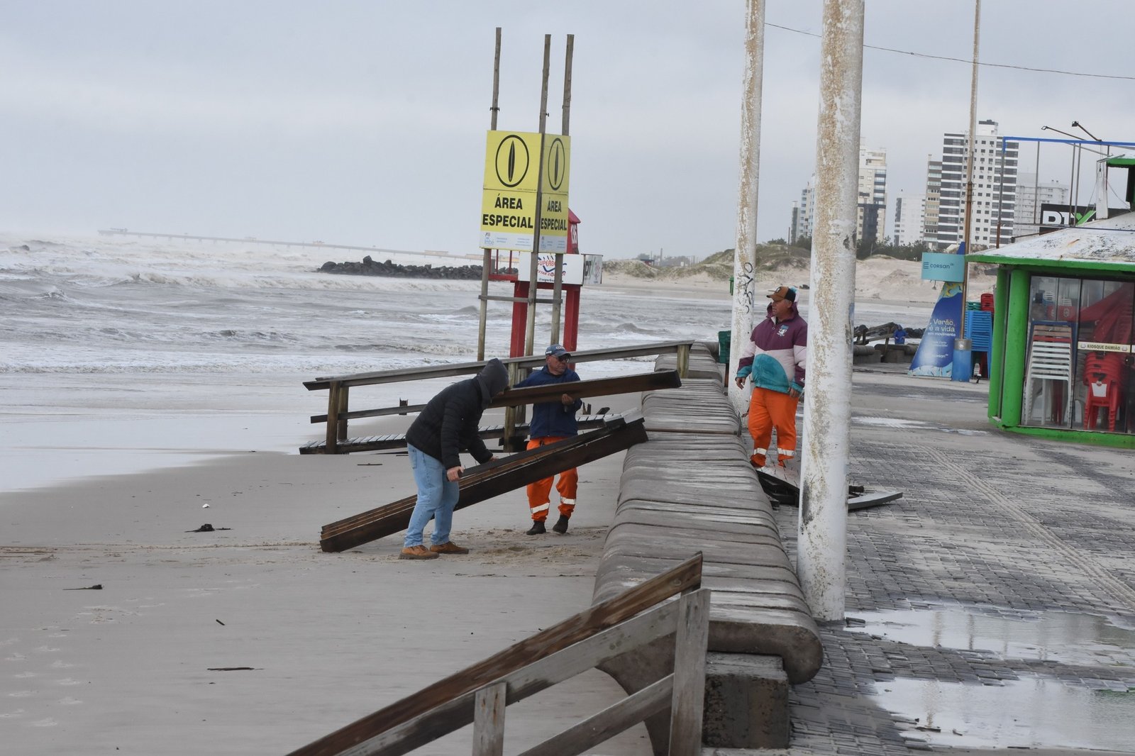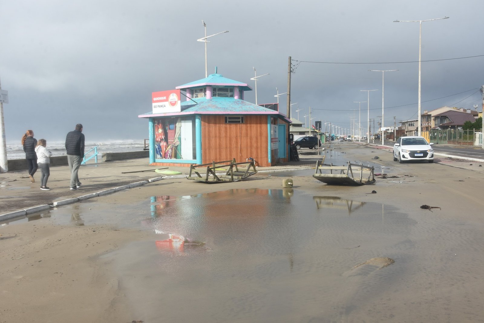 Na região central, as ondas avançaram sobre a faixa de areia, ultrapassaram o calçadão e atingiram a Avenida Beira-Mar. No norte do município, a água também invadiu ruas paralelas à orla. O Rio Tramandaí, com o nível elevado devido à força dos ventos, transbordou e provocou acúmulo de pedras e entulhos no Guia Corrente, um dos principais atrativos turísticos da cidade.