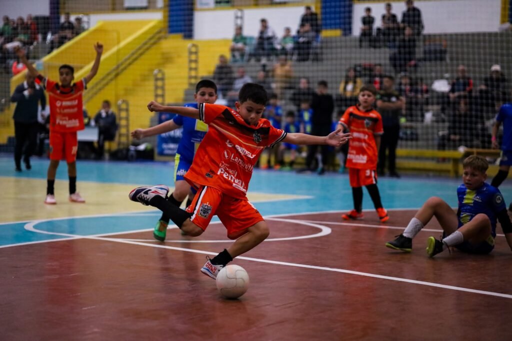 A Copa Gauchinho de Futsal 2025 integrou a programação do Festival de Inverno de Capão da Canoa no último domingo (3), promovendo um dia intenso de esporte no Ginásio Otto Birlem, das 8h às 18h. Com jogos disputados entre atletas das categorias Sub-8 a Sub-15, a competição reuniu 24 equipes em um ambiente marcado pela emoção na quadra, integração entre os participantes e grande presença do público. A realização foi da Prefeitura de Capão da Canoa, por meio da Secretaria de Cultura, Desporto e Lazer.