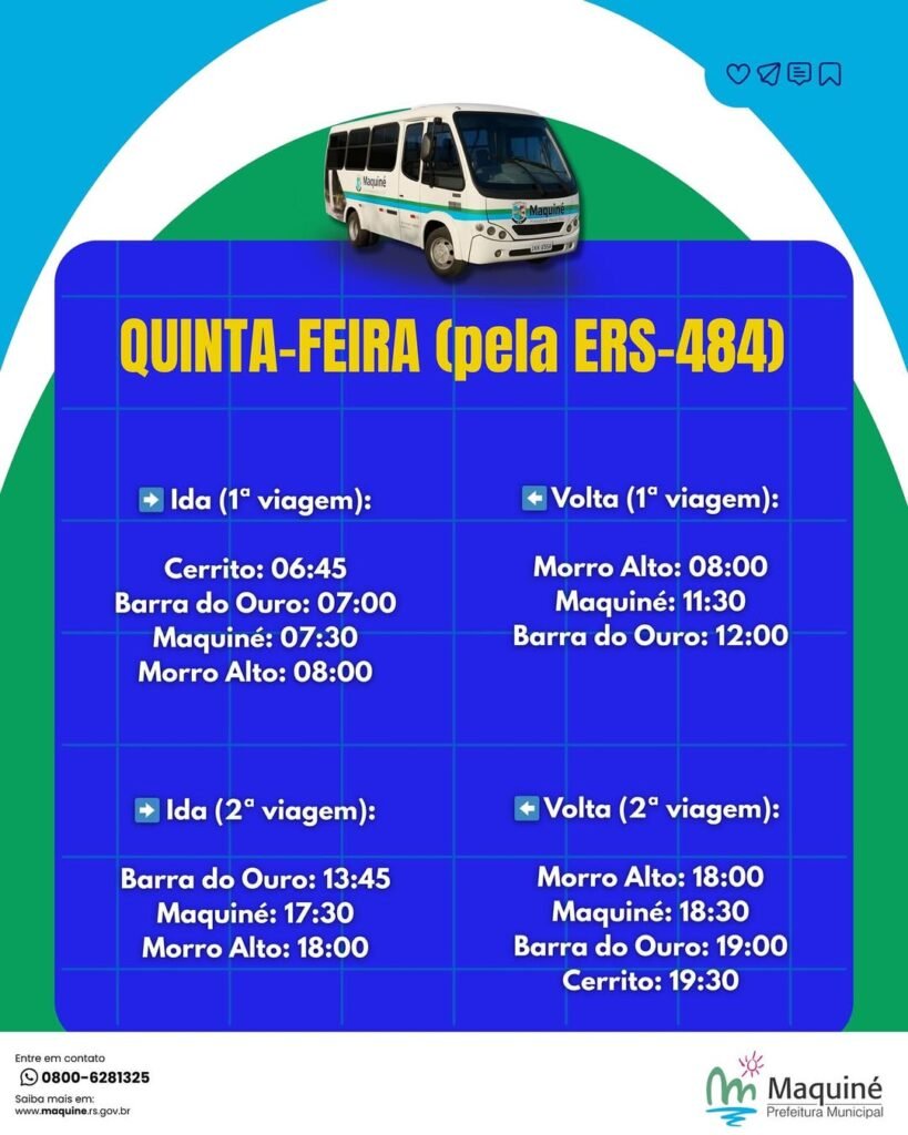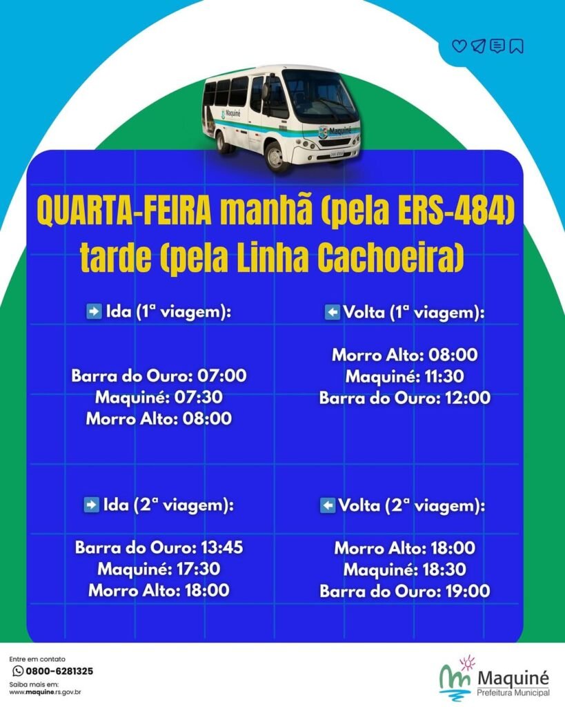 A operação do transporte público municipal em Maquiné representa um passo importante para a mobilidade local, ampliando o acesso de moradores a serviços públicos, oportunidades de trabalho e atividades cotidianas.