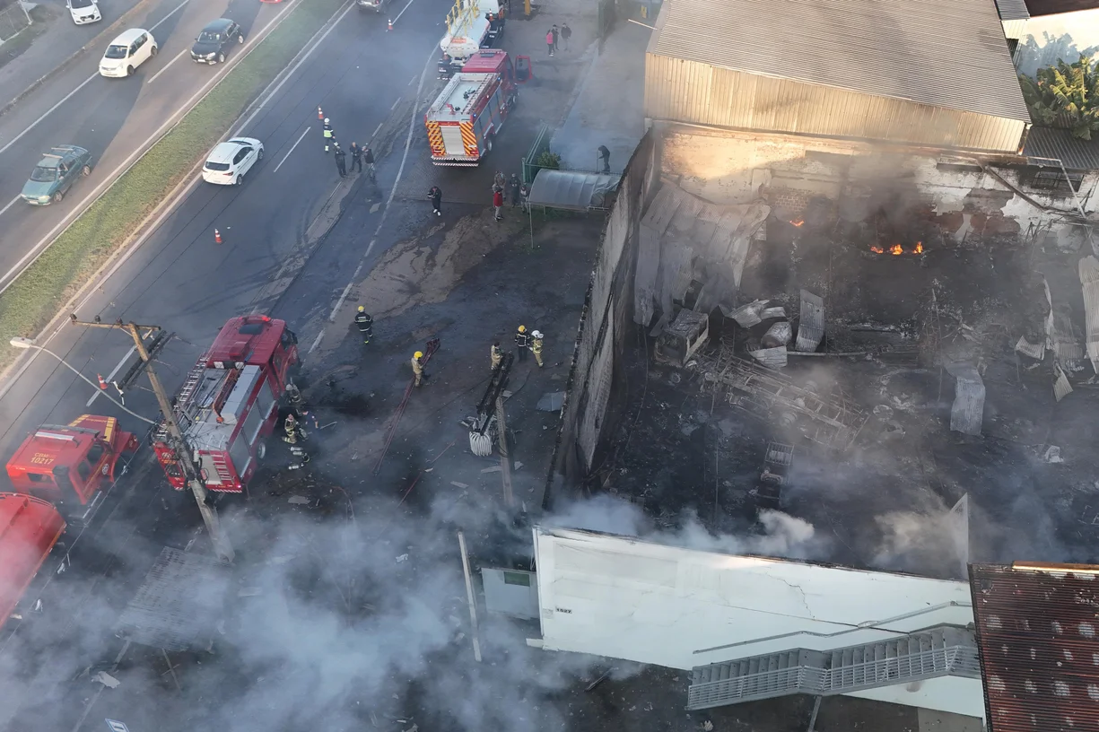 Um incêndio destruiu parte da estrutura da fábrica de plásticos Hiperplast, localizada às margens da RS-240, no bairro Scharlau, em São Leopoldo, na madrugada desta quinta-feira (21). As chamas começaram por volta das 4h30min e foram controladas pelo Corpo de Bombeiros cerca de duas horas depois, por volta das 6h30min. Ninguém ficou ferido, já que o prédio estava vazio no momento do sinistro.