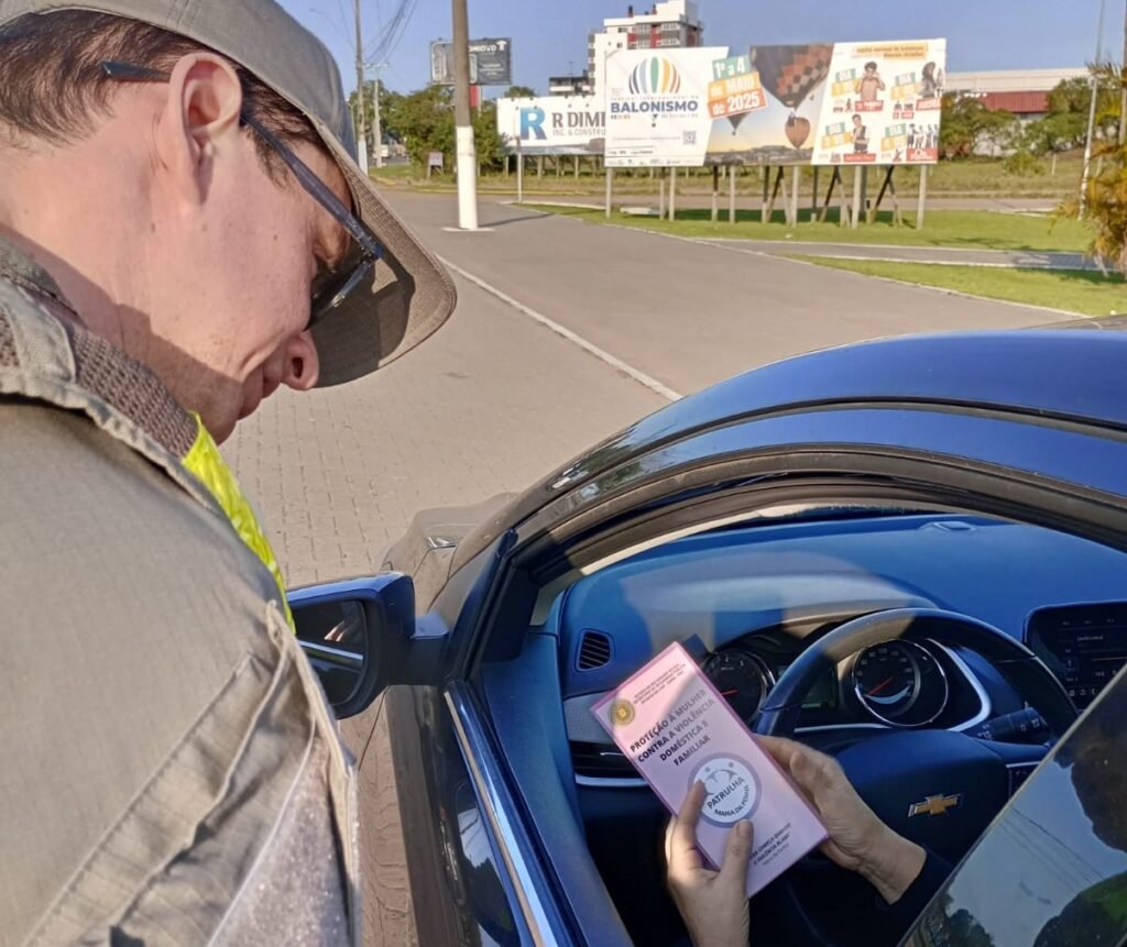 A Patrulha Maria da Penha, em conjunto com o efetivo do policiamento ostensivo do 2º Batalhão de Policiamento de Áreas Turísticas (2º BPAT), promoveu na tarde de quinta-feira (21) uma blitz educativa em Torres. A iniciativa integrou o Dia “D” da Operação Elo de Proteção, voltada ao enfrentamento da violência doméstica e familiar.