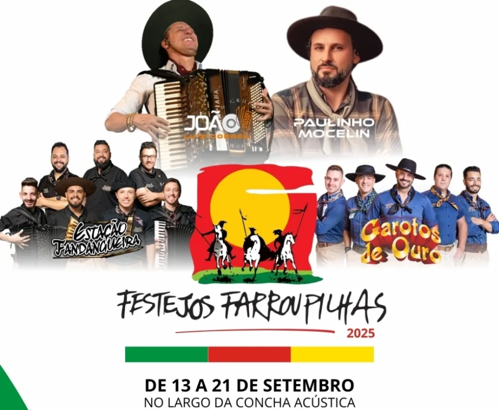 De 13 a 21 de setembro, Cidreira receberá a Semana Farroupilha, com uma programação voltada à música, à cultura e à valorização das tradições gaúchas. As atividades ocorrerão no Largo da Concha Acústica, promovidas pela Secretaria de Cultura do município.