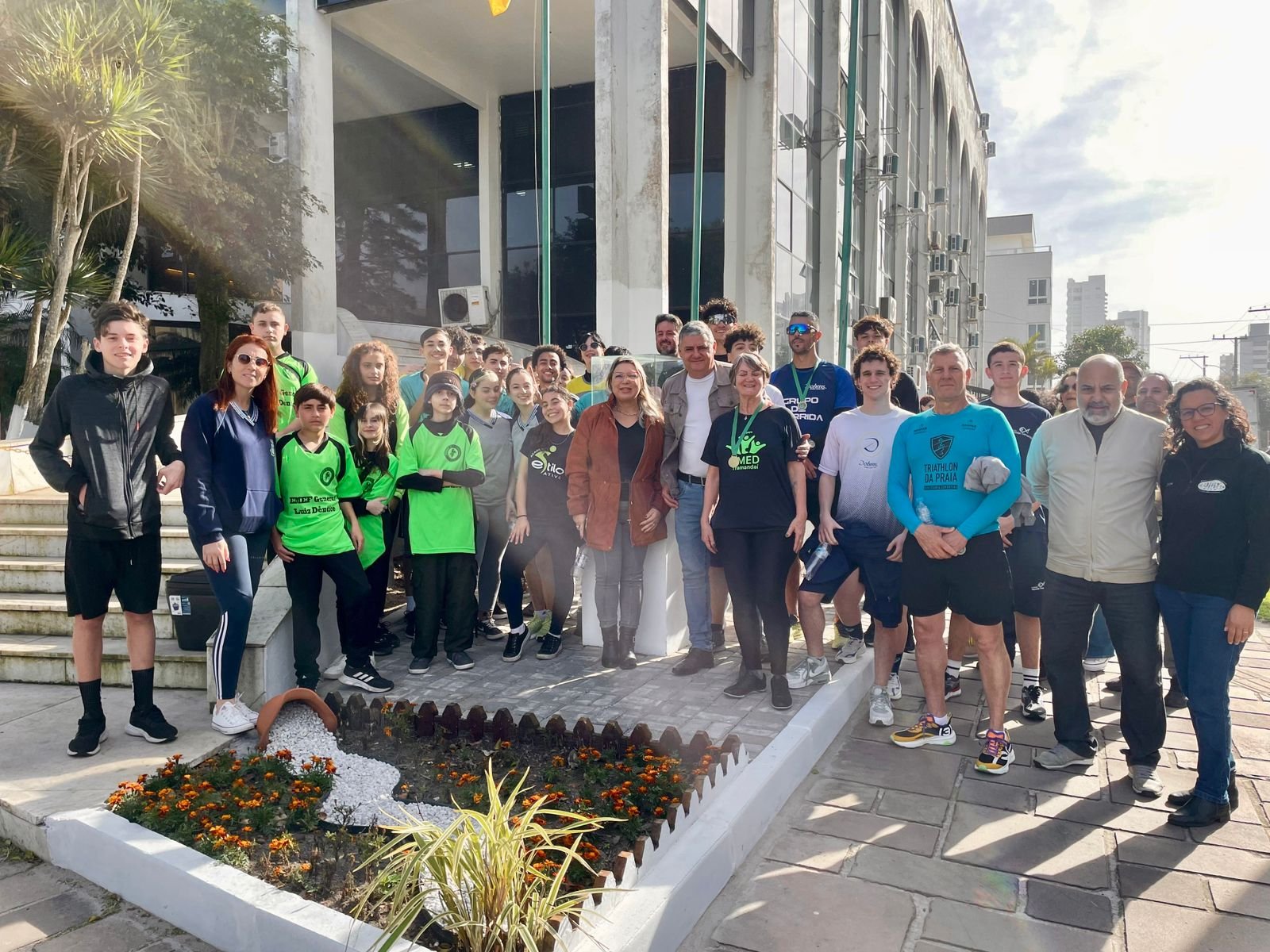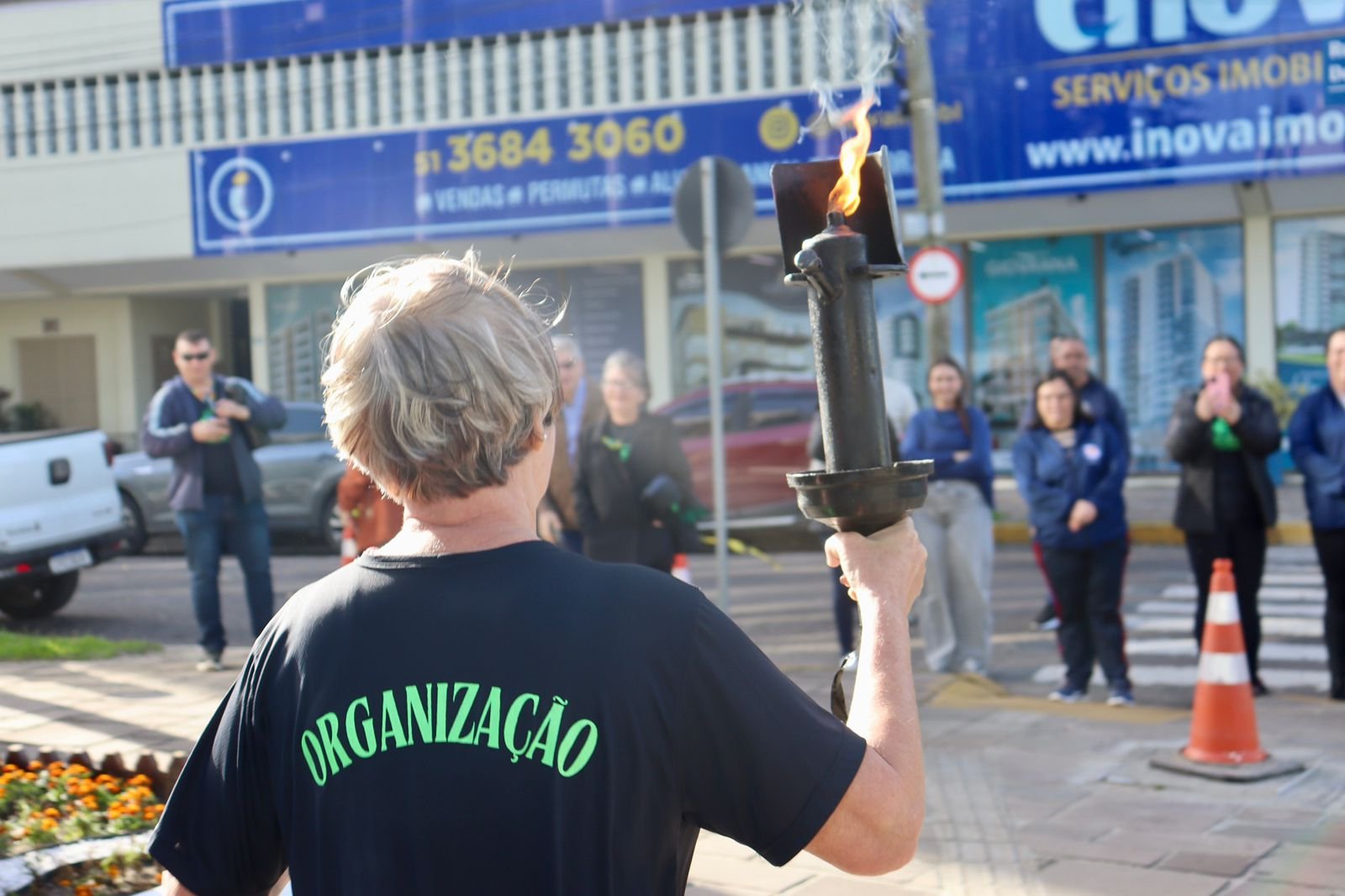Durante o percurso, a tocha foi conduzida por alunos das escolas municipais, secretários da administração e pelo Grupo de Corrida da Escola Dohms (Sinodal), que participaram da atividade cívica.