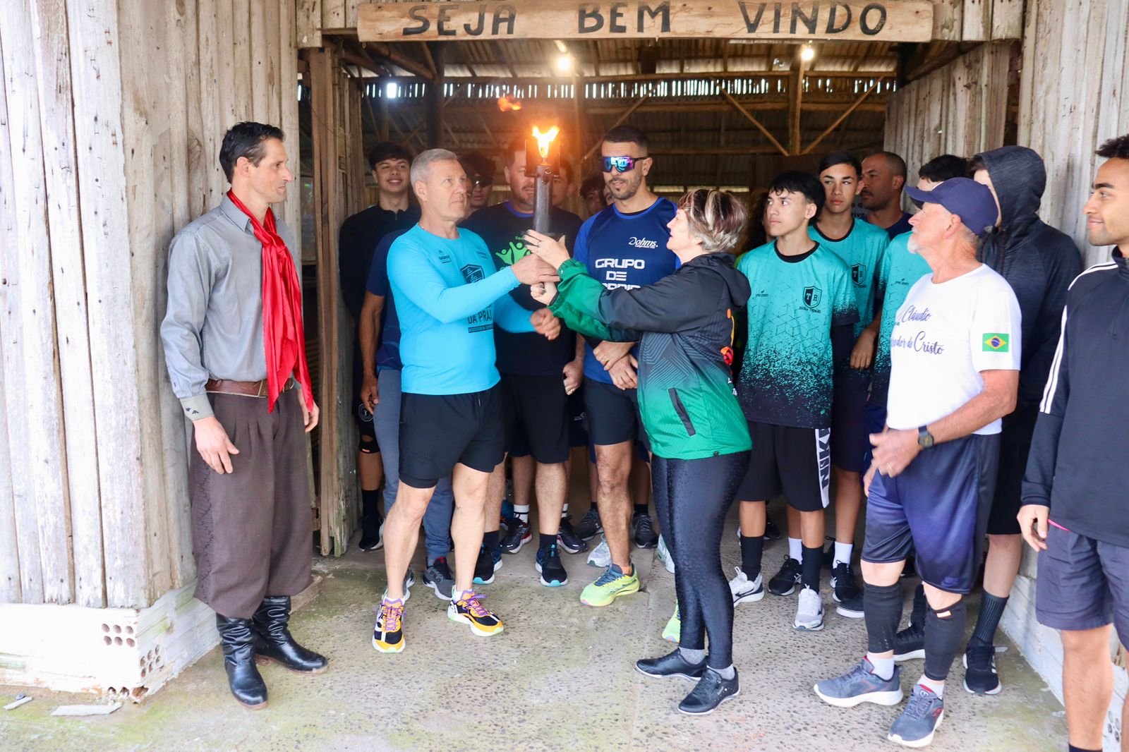 A chama partiu do CTG Gaúcho Litorâneo e percorreu as principais vias da cidade — Rua Angélica Diehl, Avenida Fernandes Bastos, Avenida Rubem Berta, Avenida Emancipação e Avenida da Igreja — até chegar à Prefeitura Municipal.