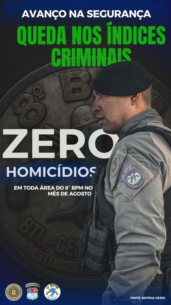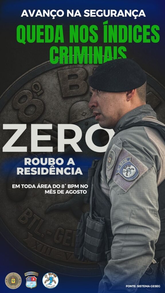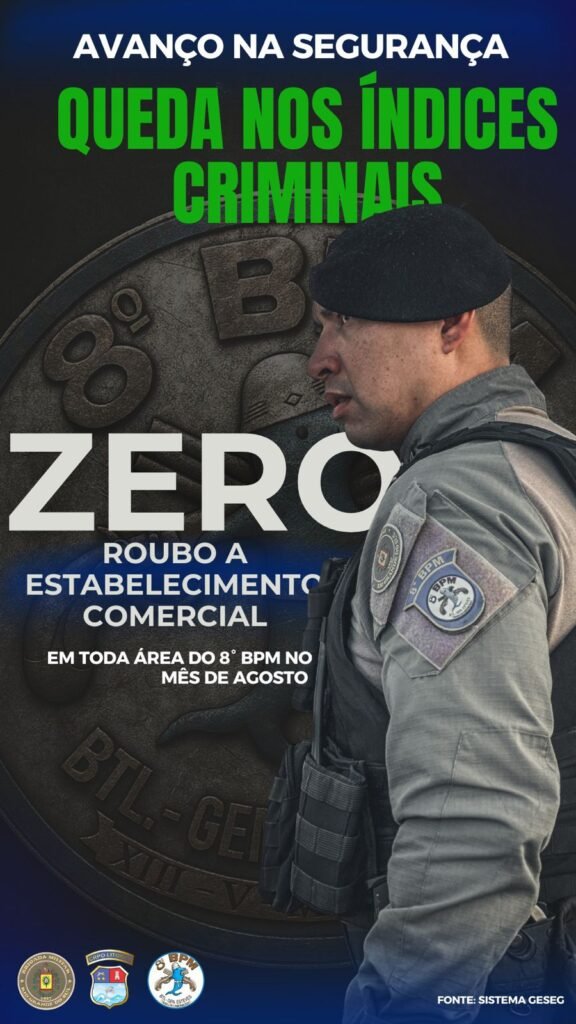 De acordo com dados dos sistemas Avante e GeSeg, não houve registro de homicídios, roubos a estabelecimentos comerciais ou residências no período. Em comparação com agosto do ano passado, os principais crimes apresentaram as seguintes quedas: