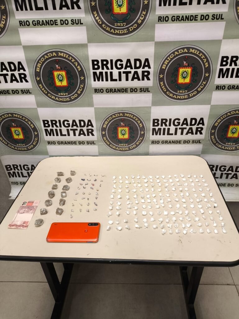 Em Capão da Canoa, no bairro Vale Verde, equipes da Força Tática prenderam um homem de 24 anos e apreenderam um adolescente. Com eles, foram encontradas 159 porções de cocaína, 33 de crack e 13 de maconha. O homem preso já tinha antecedentes por tráfico, receptação e desobediência.