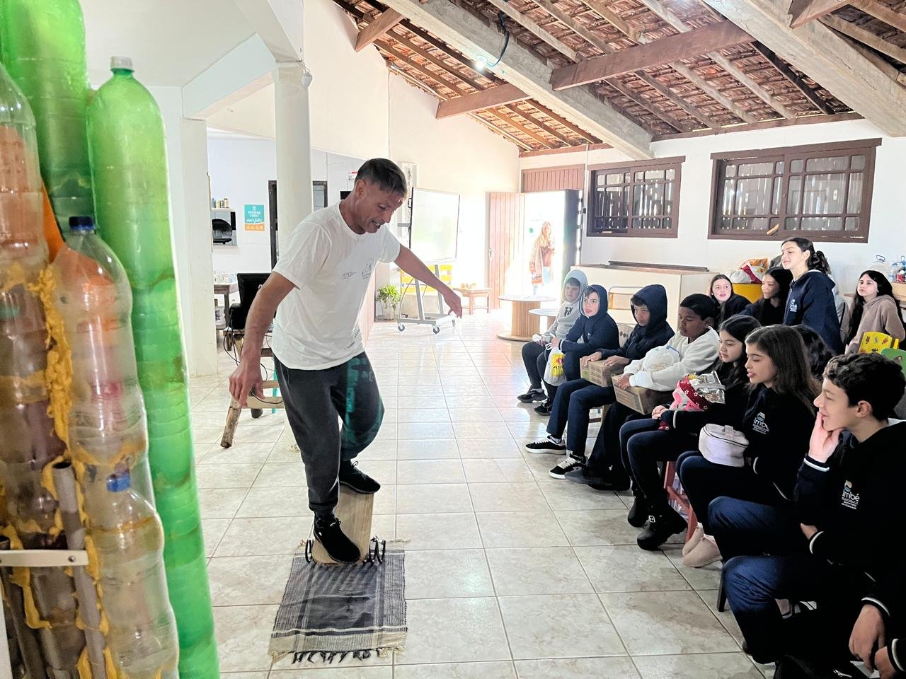 As atividades foram realizadas no Espaço EcoImbé e incluíram palestras para alunos da rede municipal e estadual. Durante os encontros, os estudantes aprenderam sobre a origem do projeto e participaram de ações práticas de coleta e triagem de resíduos na faixa de areia, com orientações sobre identificação e separação dos diferentes tipos de plástico.