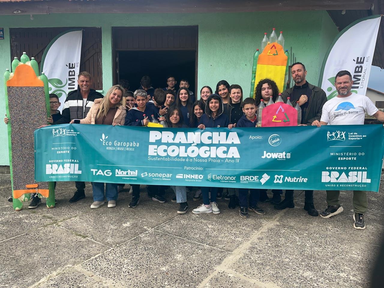 Criado há 13 anos em Santa Catarina, o Projeto Prancha Ecológica já percorreu 17 estados, atingindo mais de 60 mil crianças e retirando mais de 30 mil garrafas plásticas do meio ambiente. Além da confecção de pranchas, a iniciativa também produz quadros artísticos a partir do material reciclado e promove anualmente o Festival de Surf em Garrafas PET, em Garopaba (SC).