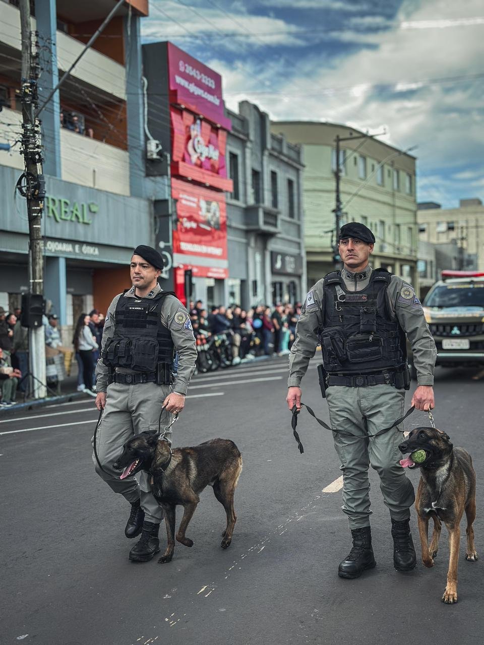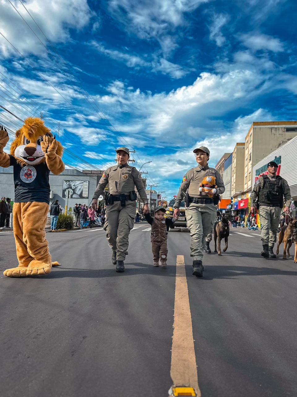 A Brigada Militar também marcou presença no desfile, representada por diferentes frentes de atuação do 8º Batalhão de Polícia Militar (8º BPM). Participaram do ato policiais do policiamento ostensivo, o mascote Daren, do Programa Educacional de Resistência às Drogas e à Violência (PROERD), integrantes do Canil Regional, do Comando Ambiental (Patram), além de alunos da Escola de Formação e Especialização de Soldados de Osório. A participação da corporação evidenciou a diversidade das ações operacionais, preventivas e de formação, reforçando a presença da instituição na rotina da comunidade e seu compromisso com a segurança pública.