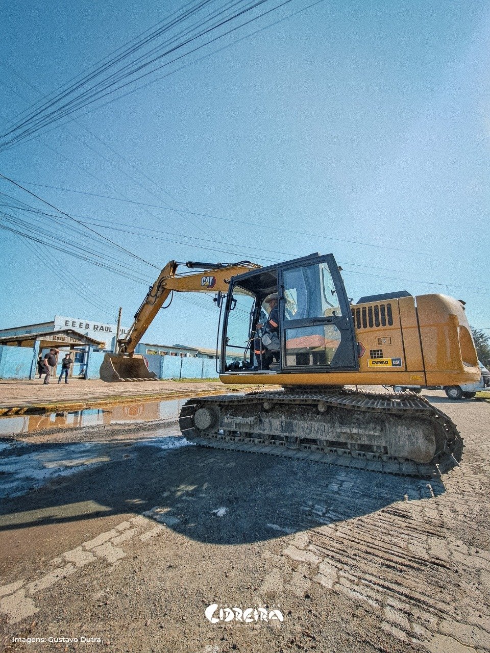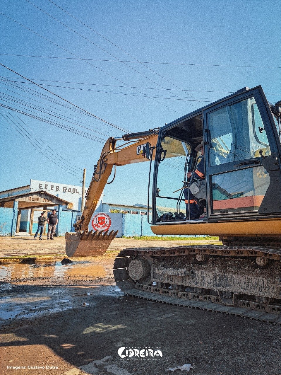 Atualmente, as equipes trabalham na Av. Fausto Borba Prates, em frente à Escola Estadual Raul Pilla, realizando a drenagem da água acumulada e preparando o trecho para aplicação de novo pavimento. Recentemente, foram concluídos serviços na Av. do Arroio e na Rua Osvaldo Aranha.