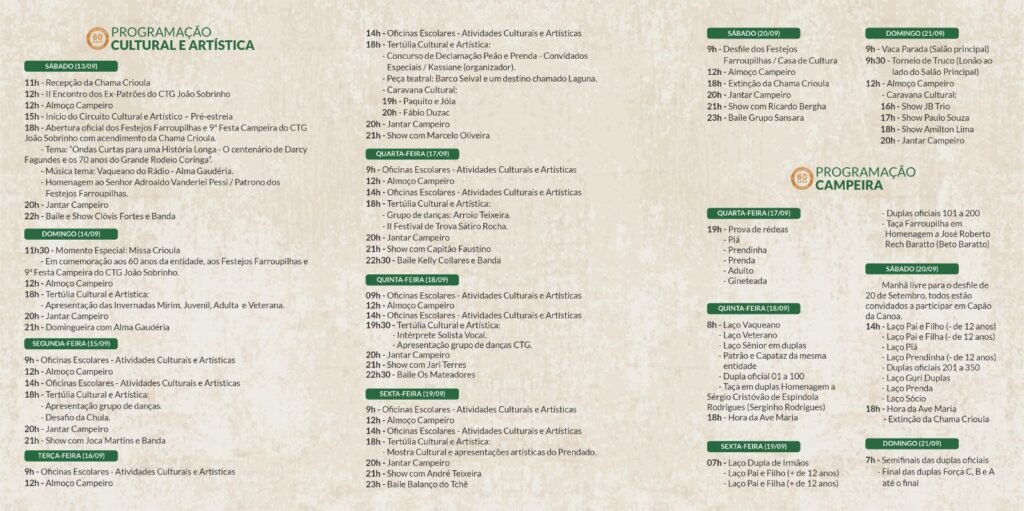 📅 Festejos Farroupilhas e 9ª Festa Campeira do CTG João Sobrinho