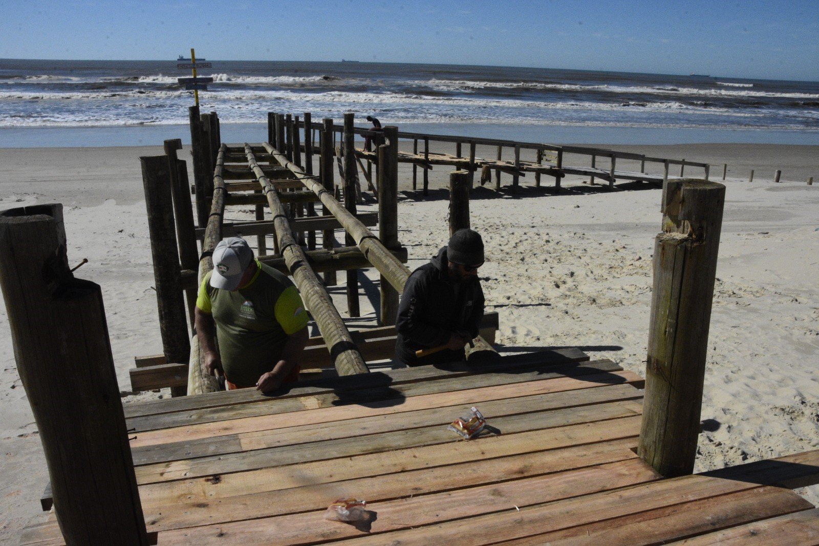 A Secretaria Municipal de Obras e Viação de Imbé iniciou a recuperação das passarelas de acesso à praia no Centro da cidade. As estruturas, utilizadas diariamente por moradores, veranistas e turistas, vinham sendo afetadas pelo desgaste natural e pelo acúmulo de areia trazido pelos ventos.