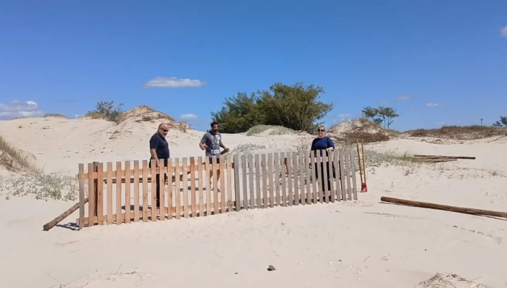 A Secretaria de Meio Ambiente de Tramandaí realizou nesta sexta-feira (12) a instalação de barreiras físicas, conhecidas como “sand fences”, na área de dunas próxima à barra do rio Tramandaí. A ação integra o Plano de Manejo e Conflitos de Urbanização, Campos Arenosos e Dunas, aprovado pela Licença Única FEPAM n° 2697/2024.