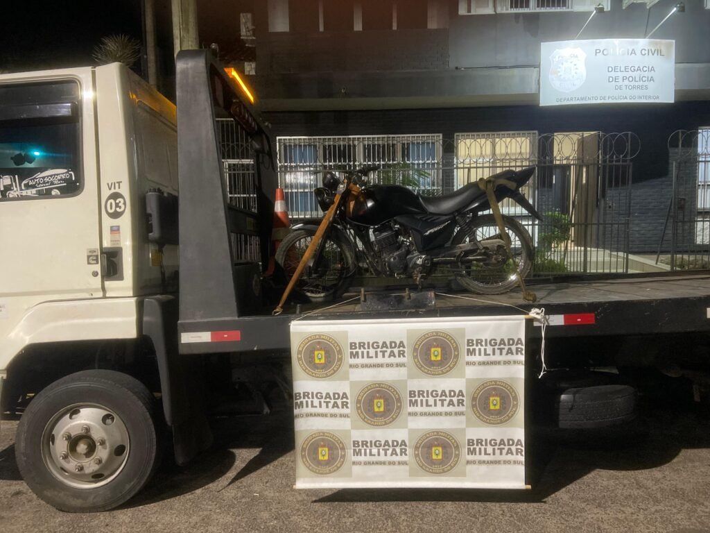 Em Arroio do Sal, policiais da Força Tática localizaram uma motocicleta que havia sido furtada em Capão da Canoa, em 14 de julho. O veículo foi identificado após acompanhamento de um condutor sem capacete, que desobedeceu à ordem de parada. Durante a fuga, ele abandonou a moto em uma área de mata e conseguiu escapar.