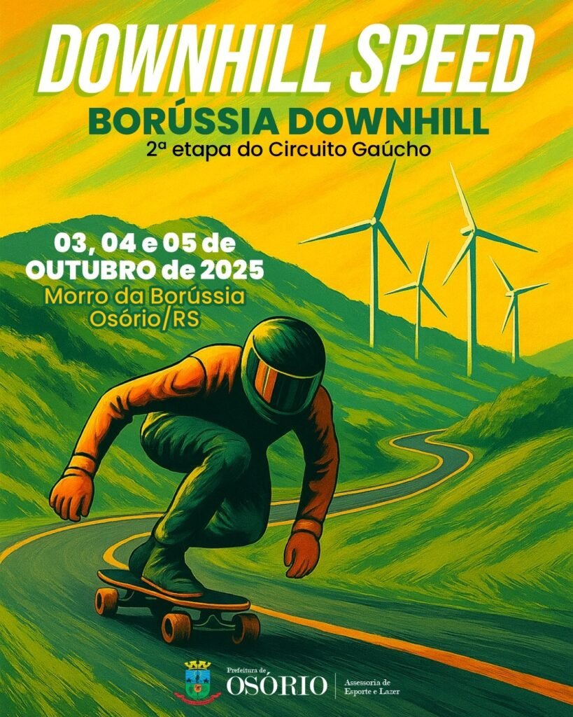O morro da Borússia, em Osório, será palco da 2ª etapa do Circuito Gaúcho de Skate Velocidade (Downhill Speed) entre os dias 3 e 5 de outubro. O local foi escolhido pelas características da estrada — curvas, inclinação e qualidade do asfalto — que tornam o trajeto ideal para a prática da modalidade, marcada pela velocidade e pela adrenalina.