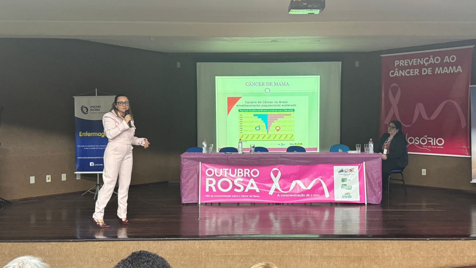 A programação do Outubro Rosa em Osório começou oficialmente na noite de quarta-feira (1º) com uma série de palestras realizadas no auditório Felipe Gomes, do Centro Universitário Cenecista de Osório (Unicnec). A iniciativa foi promovida pela Secretaria Municipal de Saúde em parceria com a instituição de ensino.