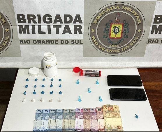 Em Arroio do Sal, no bairro Rondinha, a Força Tática deteve um jovem de 21 anos, natural de Goiás, com 20 porções de crack e cinco de cocaína. Ele já tinha antecedentes por furto, ameaça e desobediência.