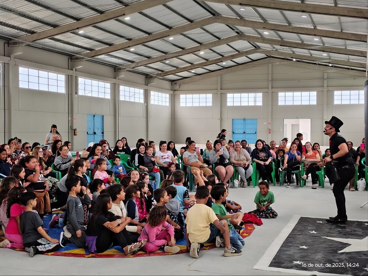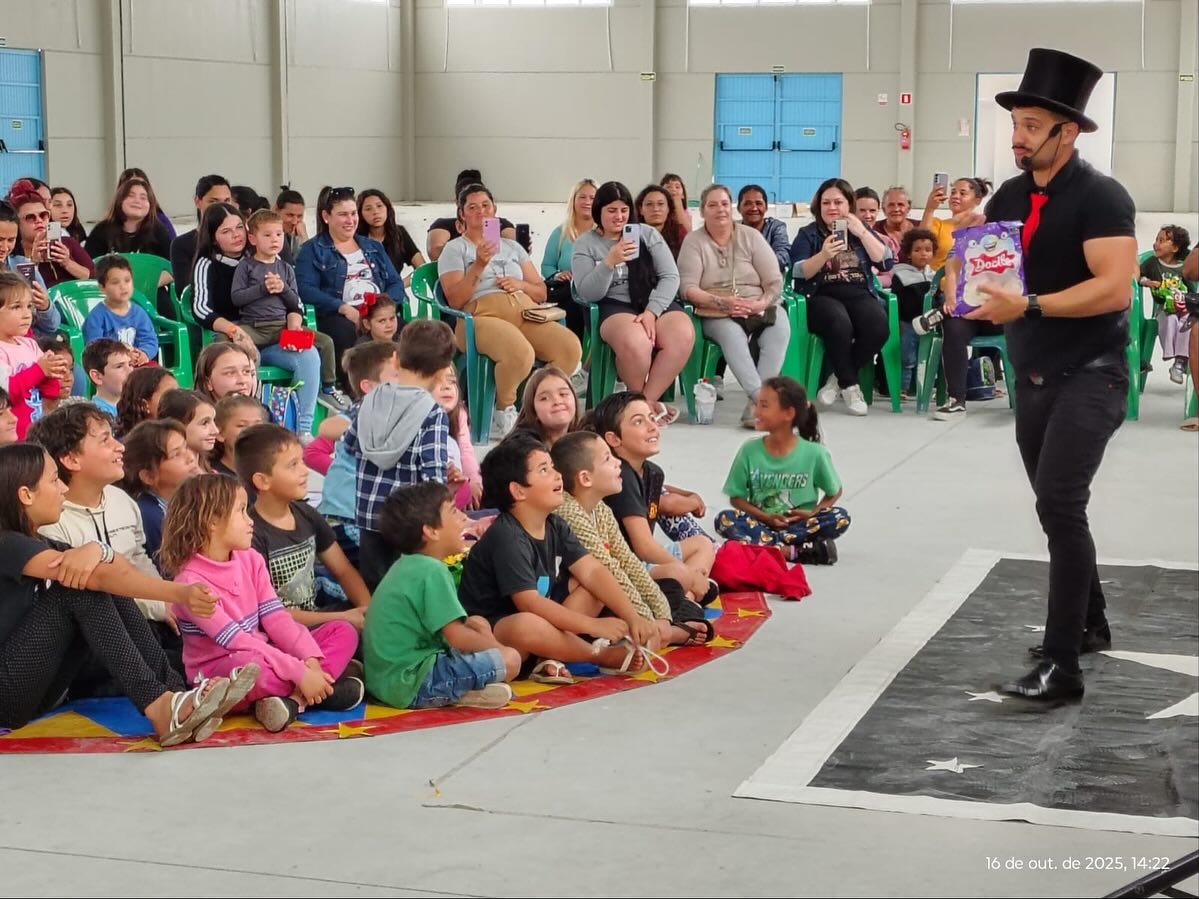 O encontro reuniu cerca de 200 famílias em um espetáculo de mágica apresentado pelo artista Bruno Mariotti, que encantou o público com truques, ilusionismo e momentos de descontração para crianças e adultos.