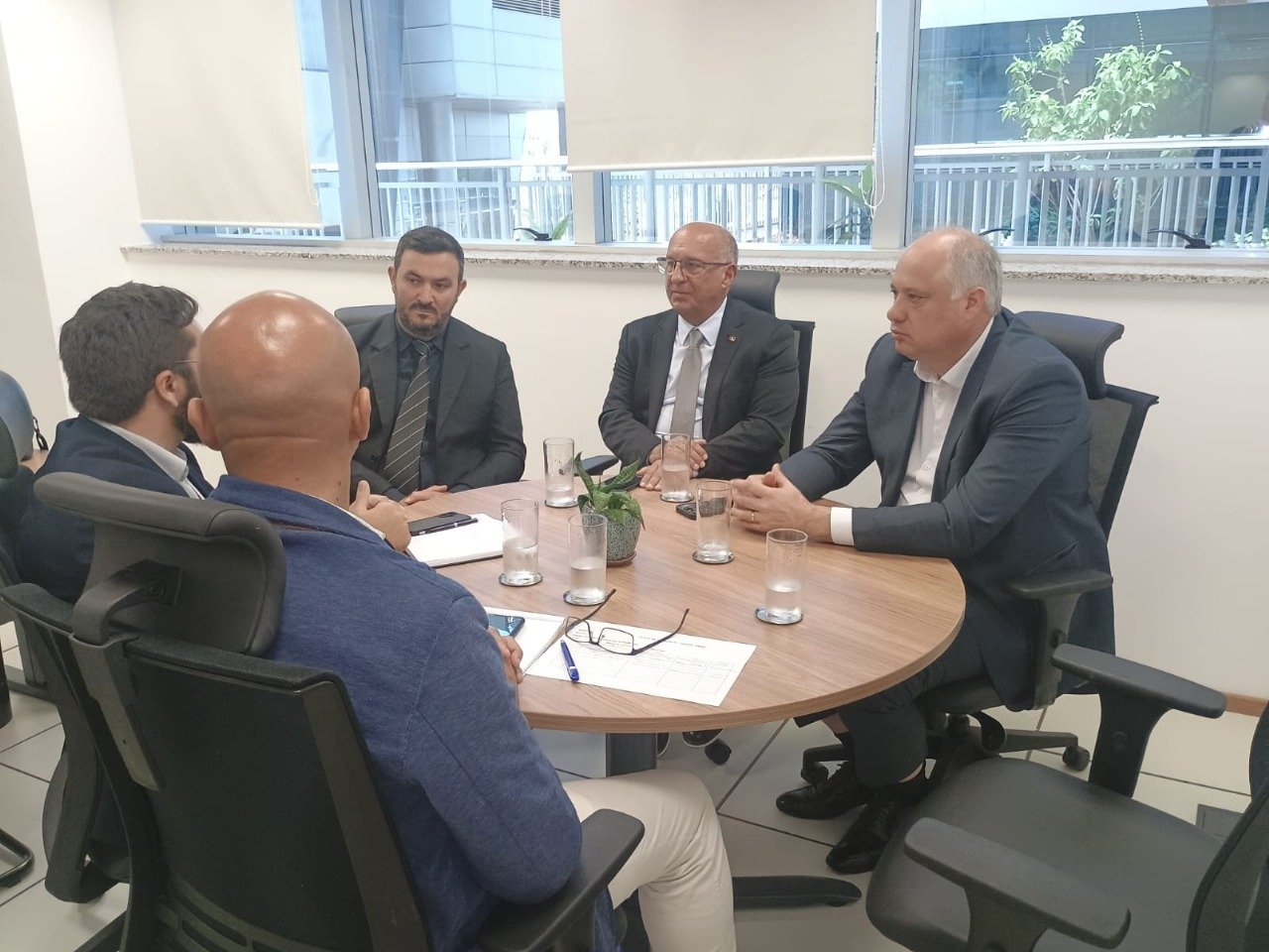 O prefeito de Tramandaí, Juarezinho Marques, o vice-prefeito de Imbé, Régis Cacetinho, e o deputado estadual Luciano Silveira (MDB) participaram, nesta quarta-feira (22), de uma