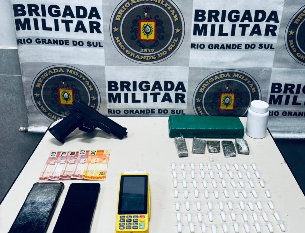 No centro da cidade, outra equipe da Brigada Militar prendeu um homem de 34 anos por tráfico de drogas. A ação ocorreu após trabalho de inteligência que identificou um veículo Chevrolet Onix, de cor preta, sendo utilizado para a entrega de entorpecentes. O condutor desobedeceu a ordem de parada e tentou fugir, mas foi interceptado pela Força Tática.