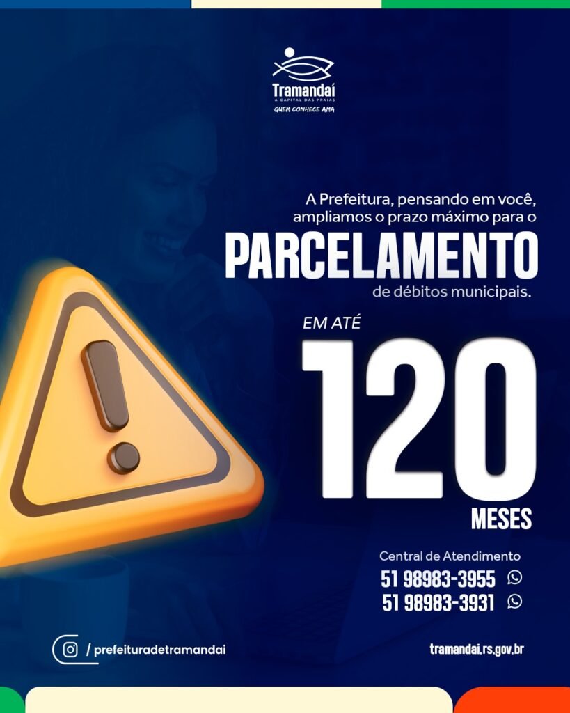 A Prefeitura de Tramandaí passou a oferecer aos contribuintes em débito a possibilidade de parcelar suas dívidas em até 120 meses, conforme prevê a nova legislação aprovada em 2024. A medida substitui os programas de refinanciamento tradicionais, conhecidos como REFIS, e amplia o prazo máximo de parcelamento, antes limitado a 36 meses.