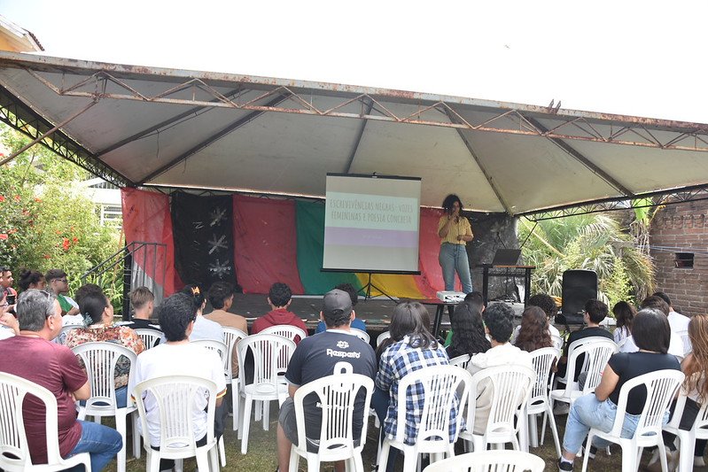 Ao longo do dia, o espaço recebeu a oficina “Escrevivências Negras – Poesia Concreta e Vozes Femininas”, conduzida pela professora Jade Rocha, com foco na produção poética e na valorização das narrativas de mulheres negras. A ação buscou estimular a expressão artística como ferramenta de fortalecimento identitário e reflexão social.