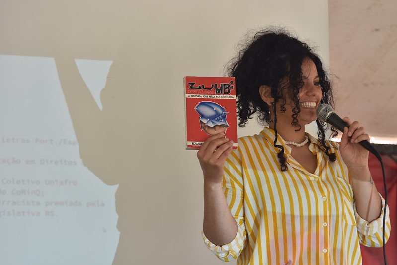 Na parte da tarde, a programação incluiu atividades de incentivo à leitura e ao conhecimento histórico, com contação de histórias voltadas às raízes africanas, oficina de turbantes e uma roda de conversa sobre ancestralidade, autoestima, educação e enfrentamento ao racismo, conduzida pela professora de história Juliana Vinskoski.