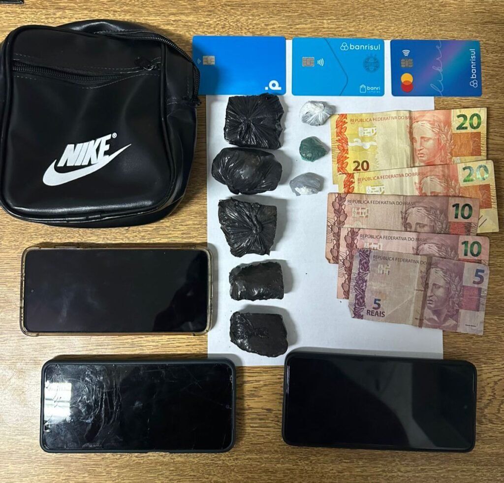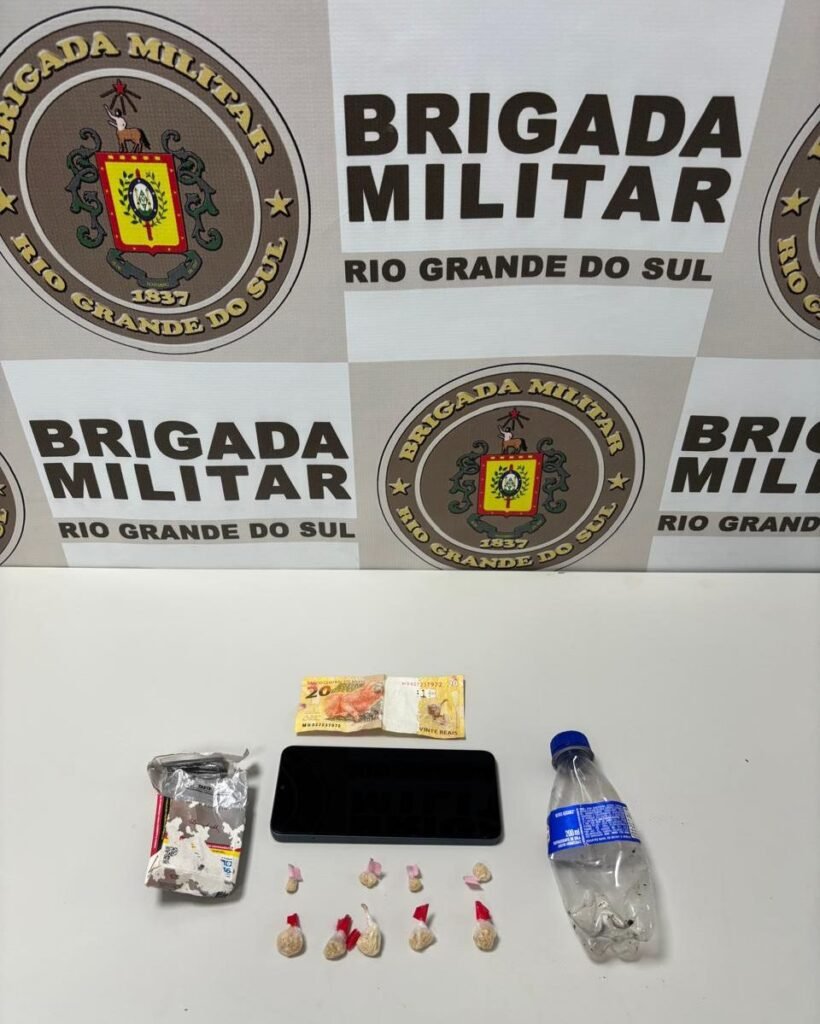 No bairro Jaú, em Santo Antônio da Patrulha, um homem monitorado por tornozeleira eletrônica foi detido após denúncias de tráfico em uma área de mata. Durante a ação, os policiais flagraram a troca de objetos entre dois indivíduos. Na abordagem, foram encontradas oito porções de crack, um celular e R$ 20 com um homem de 27 anos, que possui antecedentes por roubo e tráfico. O segundo indivíduo carregava uma porção de crack e foi identificado como usuário.